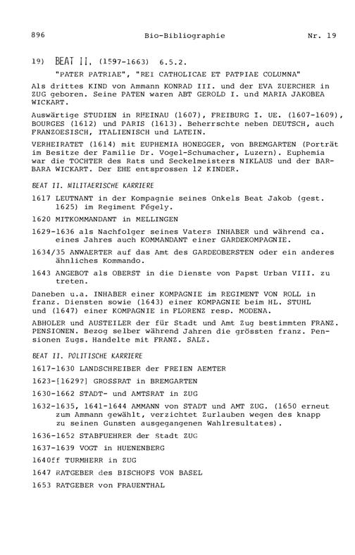 20. Bibliograohie der Arbeiten von Beat Fidel Zurlauben