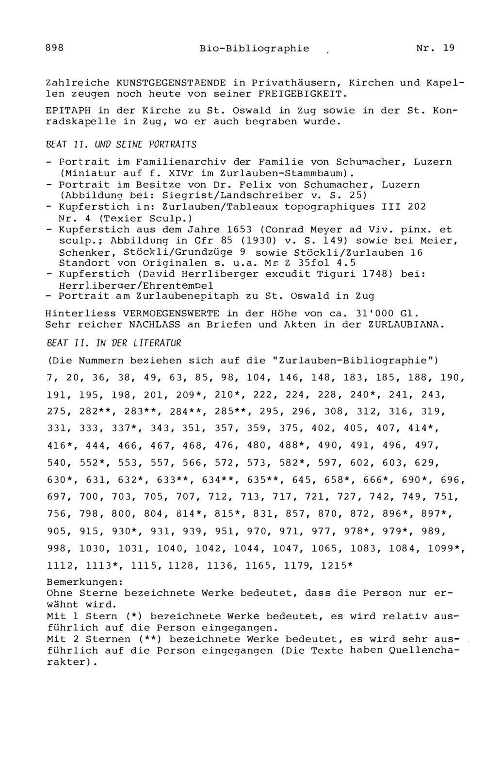 20. Bibliograohie der Arbeiten von Beat Fidel Zurlauben