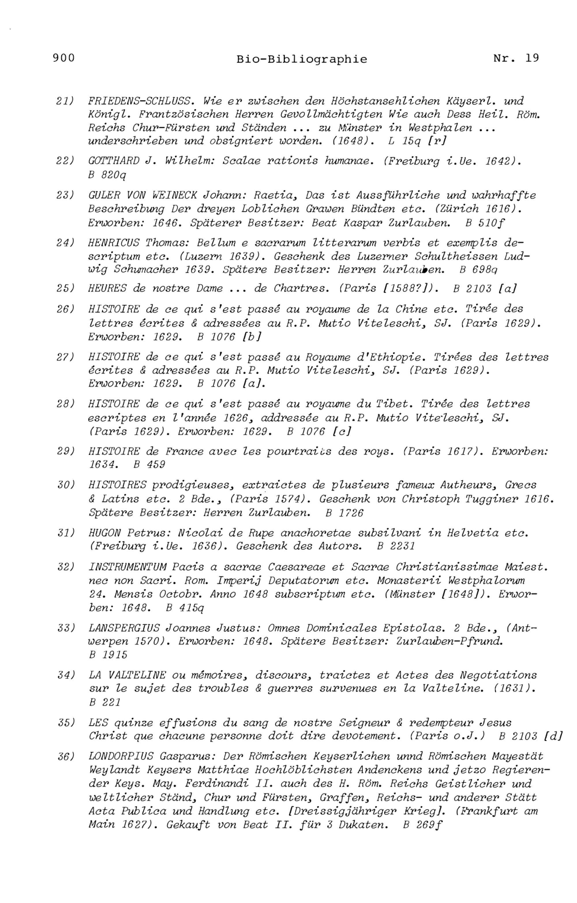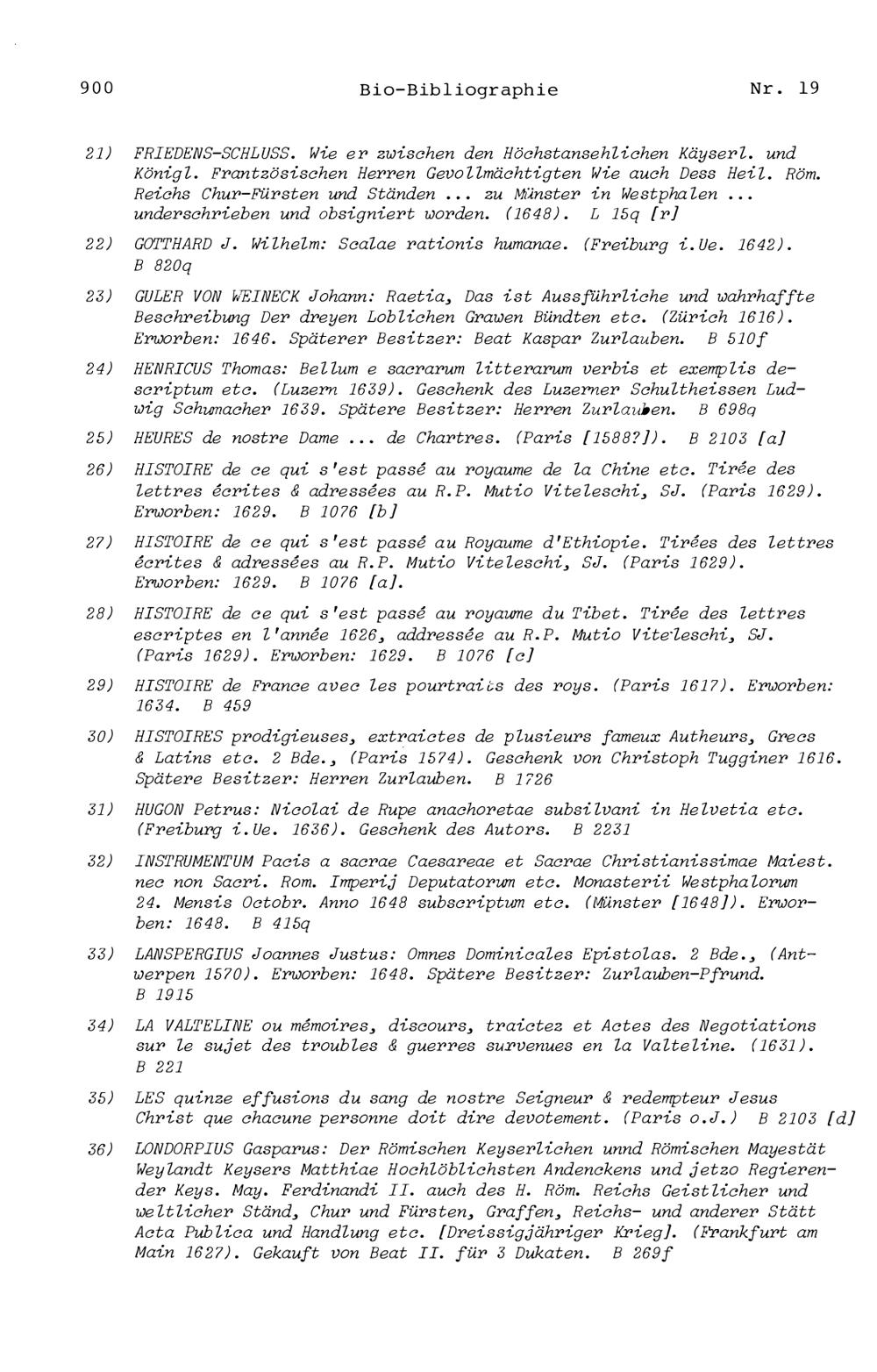 20. Bibliograohie der Arbeiten von Beat Fidel Zurlauben