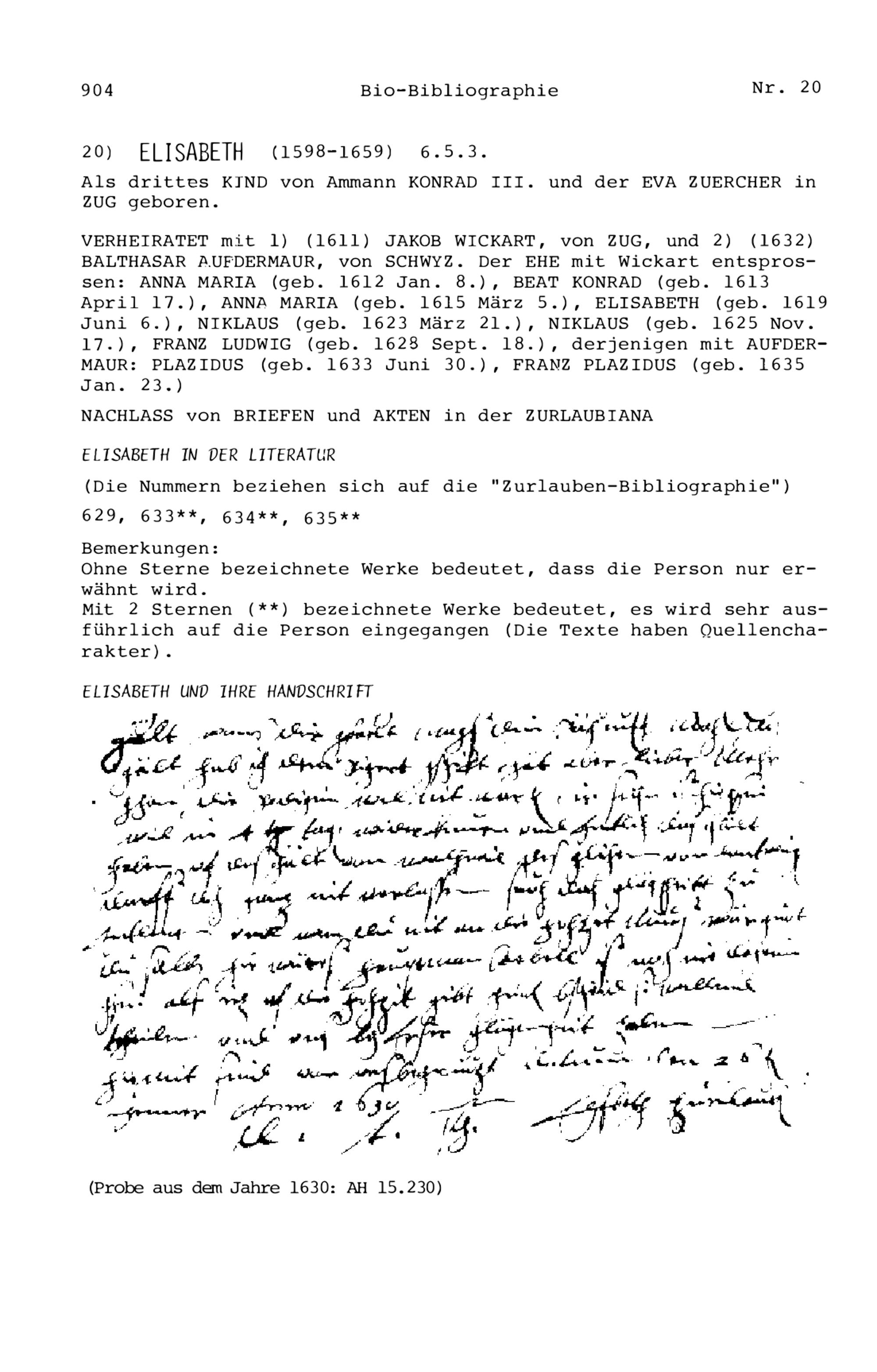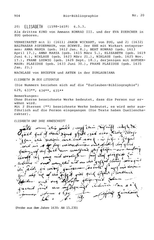 20. Bibliograohie der Arbeiten von Beat Fidel Zurlauben
