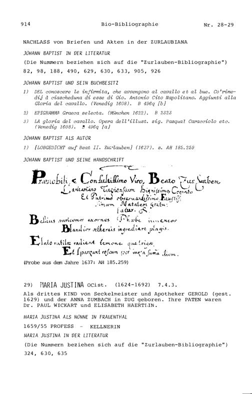 20. Bibliograohie der Arbeiten von Beat Fidel Zurlauben