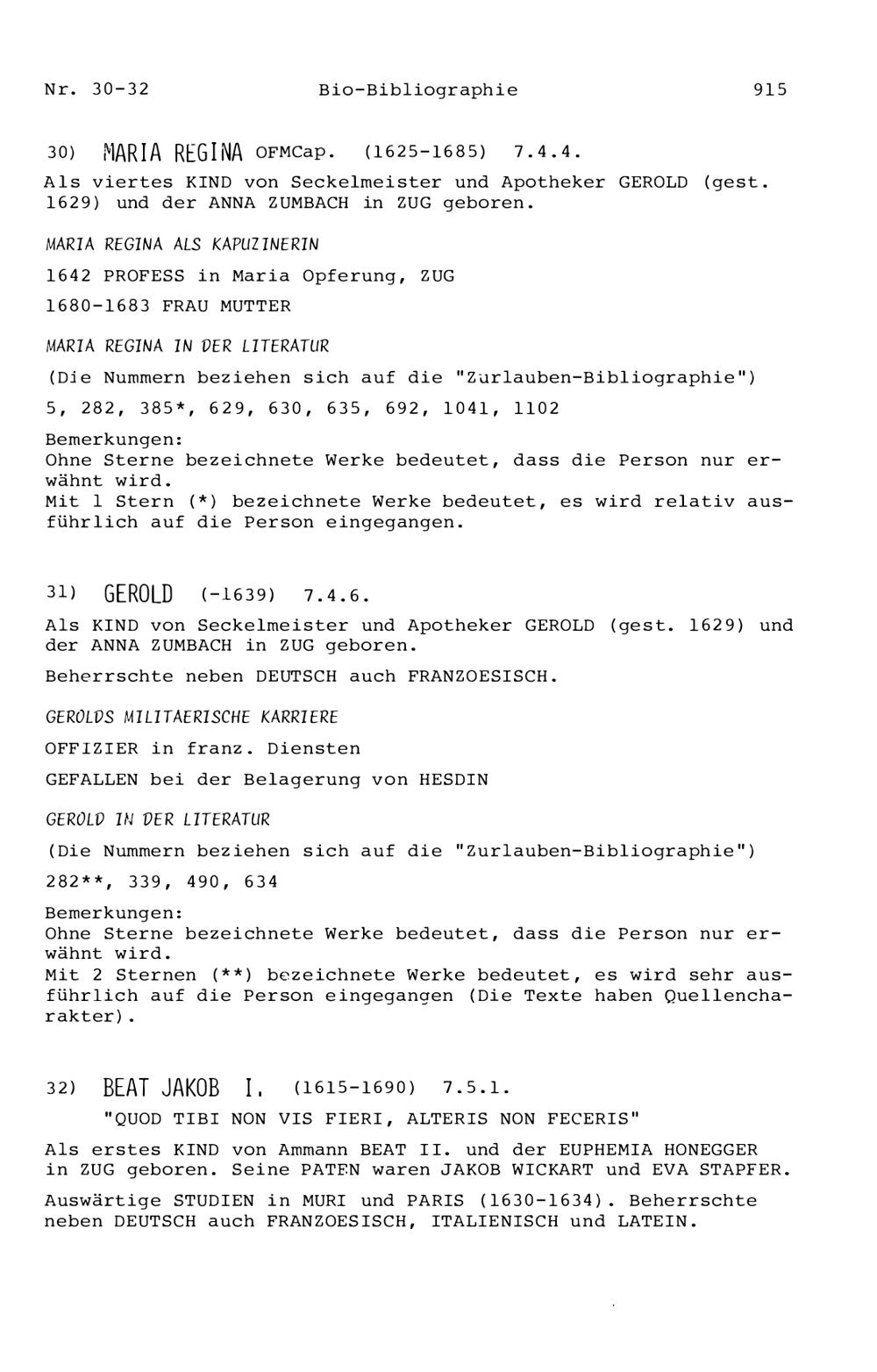 20. Bibliograohie der Arbeiten von Beat Fidel Zurlauben