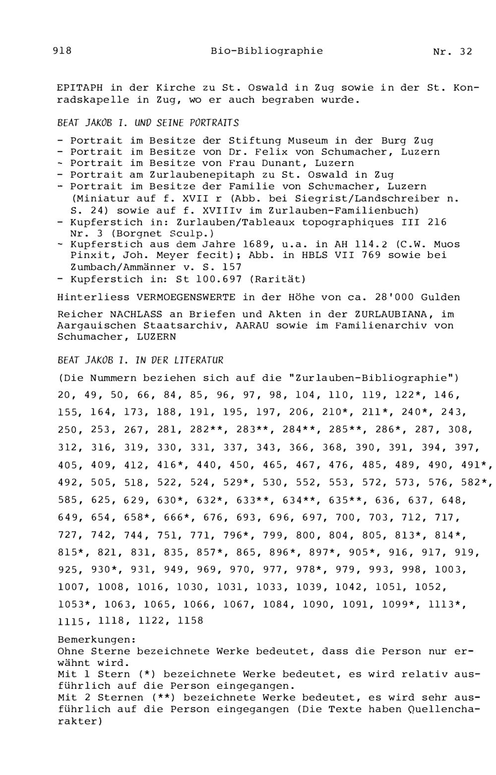 20. Bibliograohie der Arbeiten von Beat Fidel Zurlauben