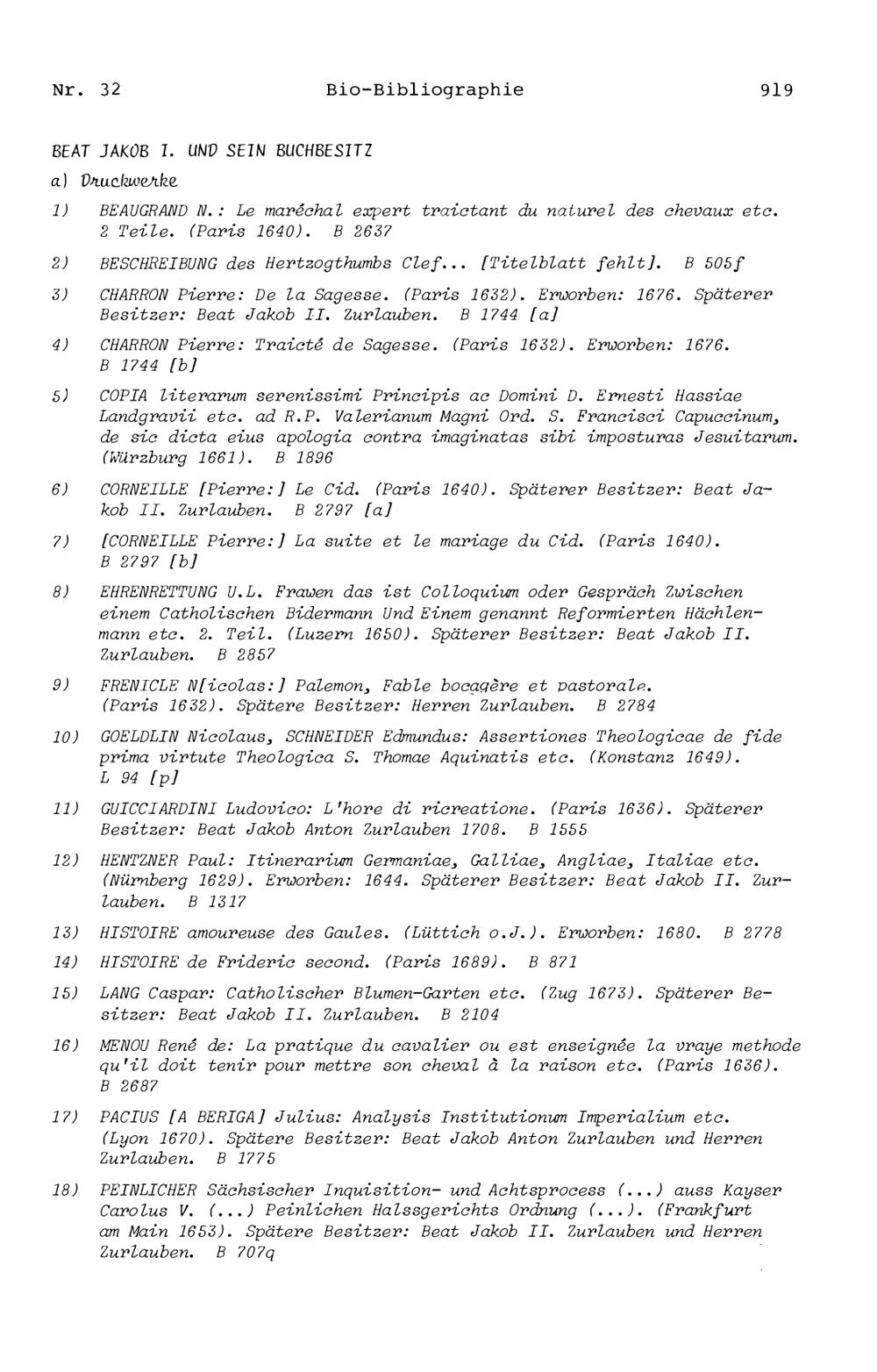 20. Bibliograohie der Arbeiten von Beat Fidel Zurlauben