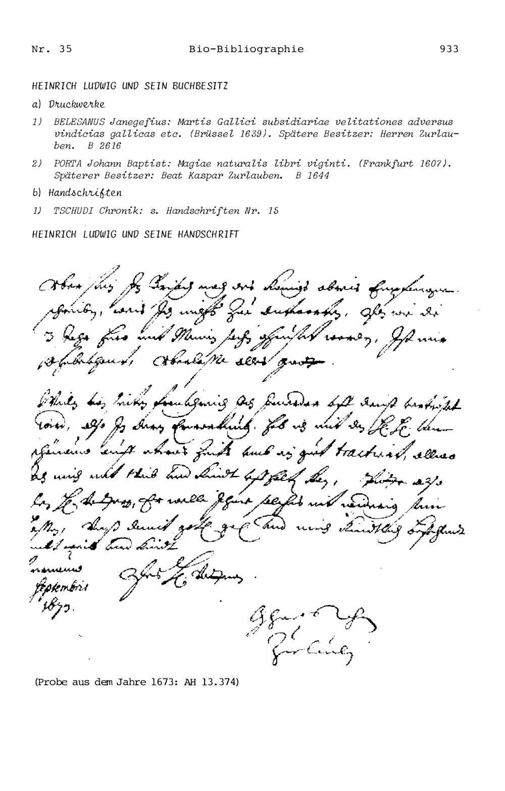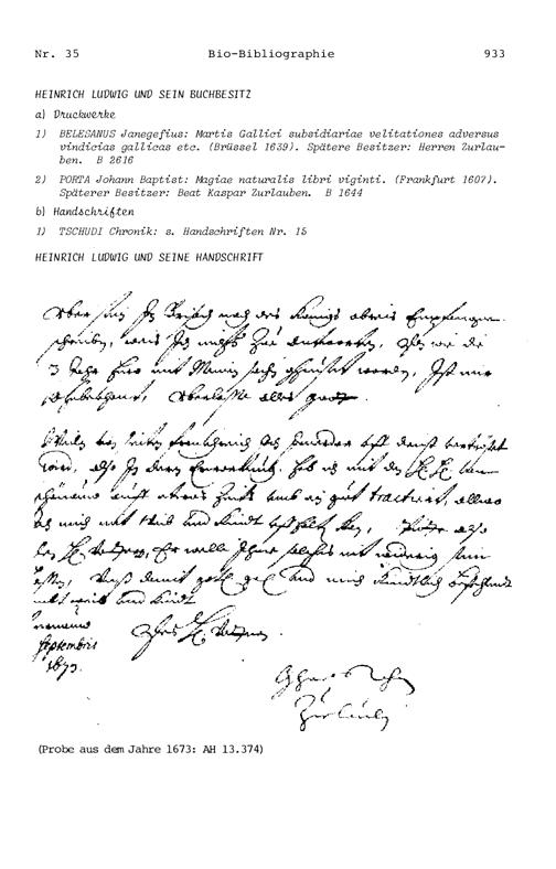 20. Bibliograohie der Arbeiten von Beat Fidel Zurlauben
