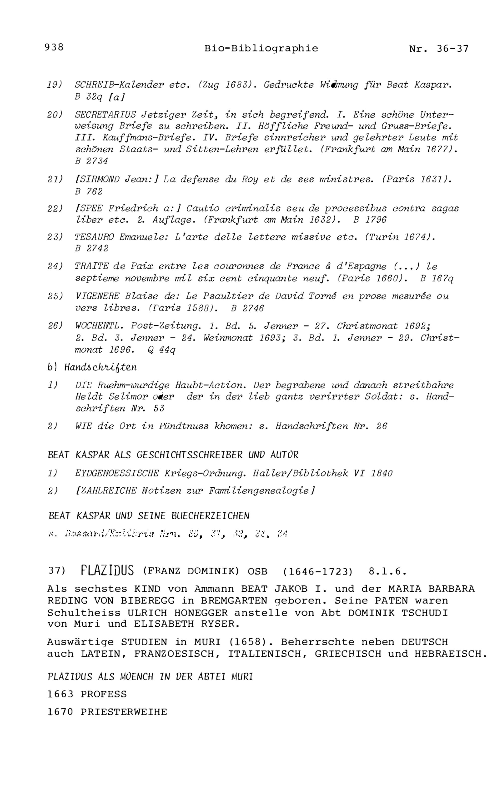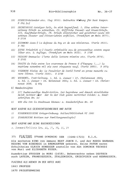 20. Bibliograohie der Arbeiten von Beat Fidel Zurlauben