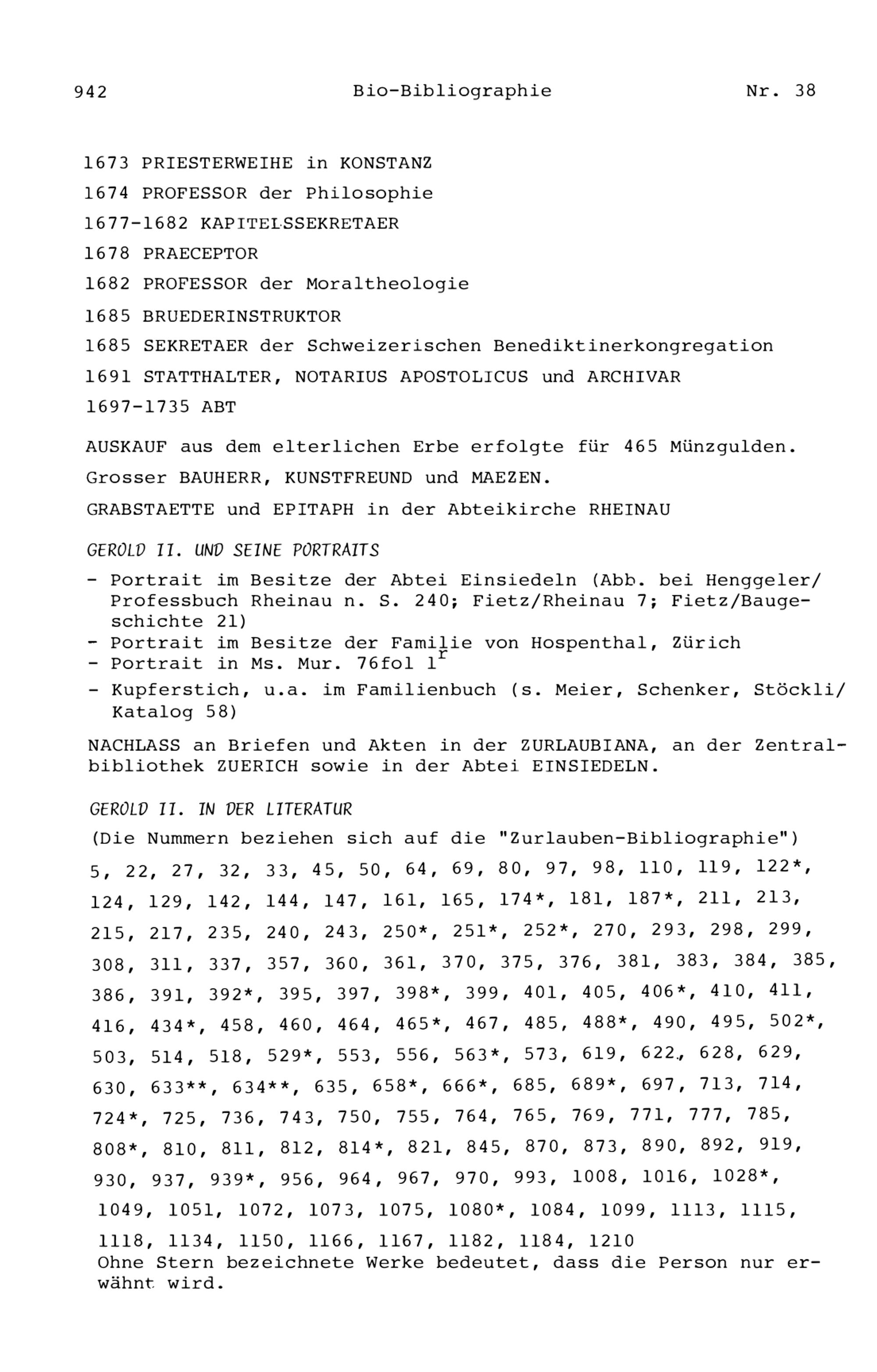 20. Bibliograohie der Arbeiten von Beat Fidel Zurlauben