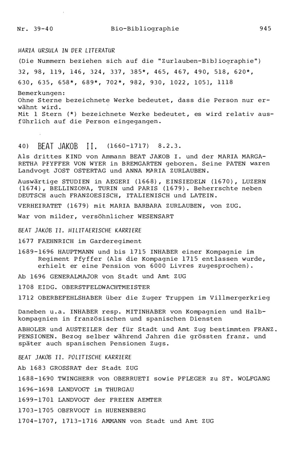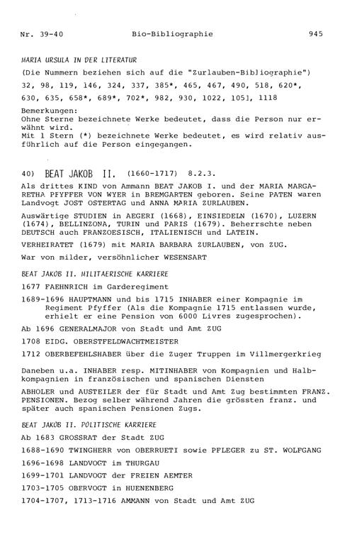20. Bibliograohie der Arbeiten von Beat Fidel Zurlauben