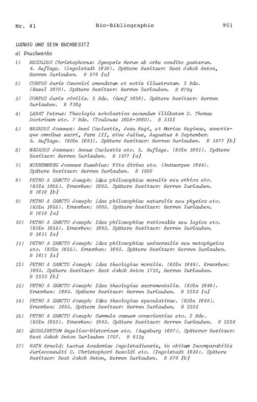 20. Bibliograohie der Arbeiten von Beat Fidel Zurlauben