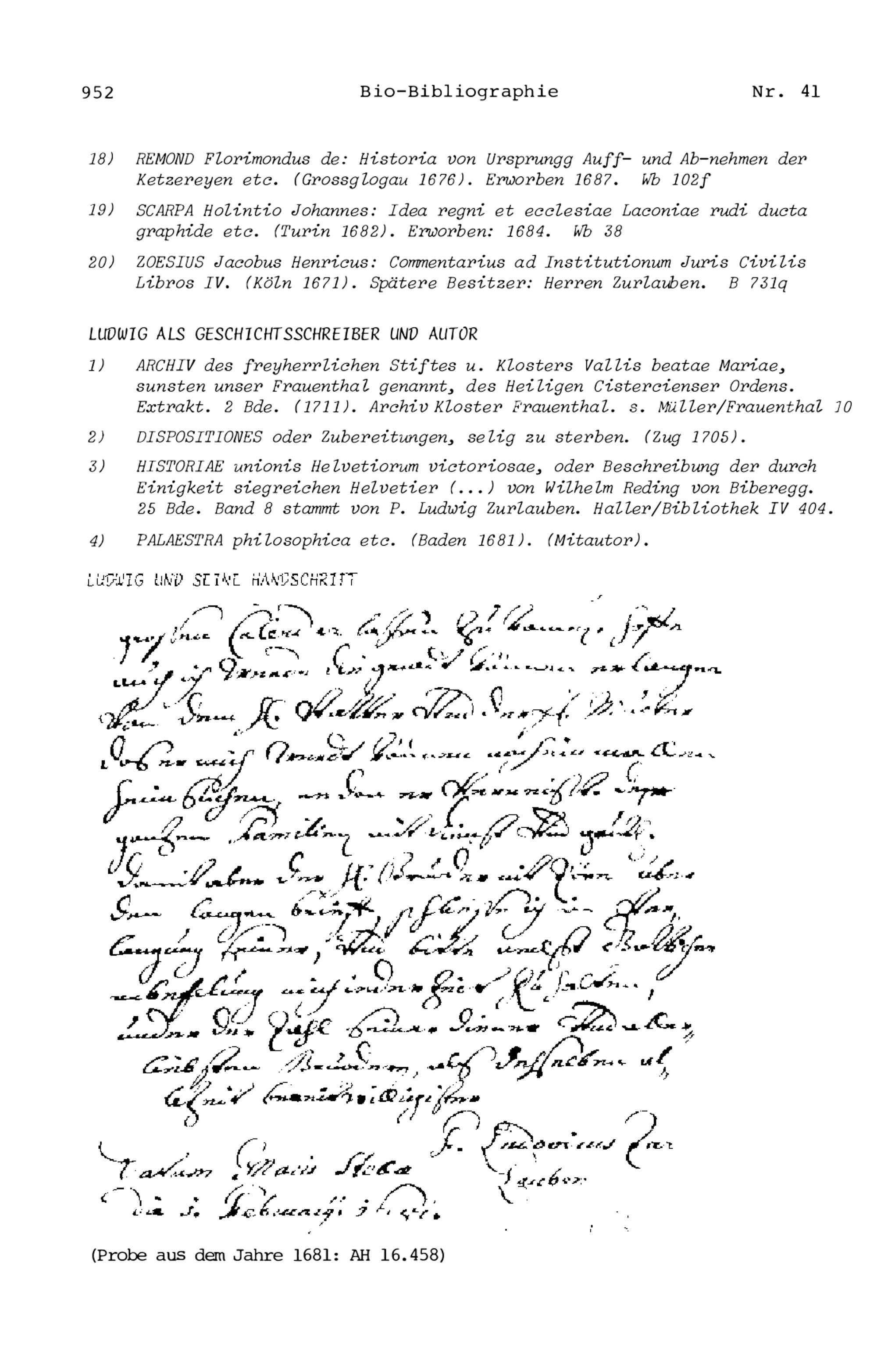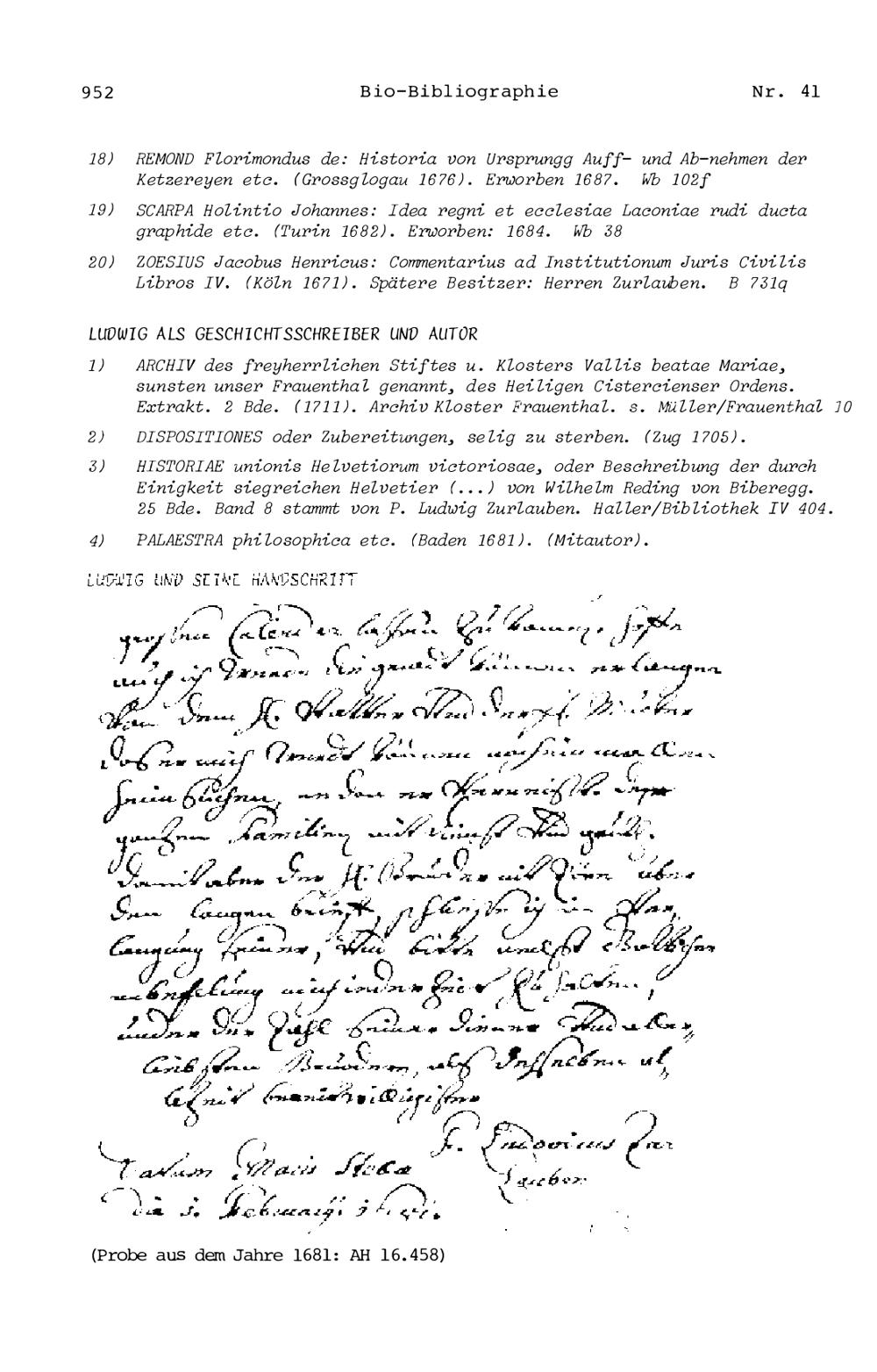 20. Bibliograohie der Arbeiten von Beat Fidel Zurlauben