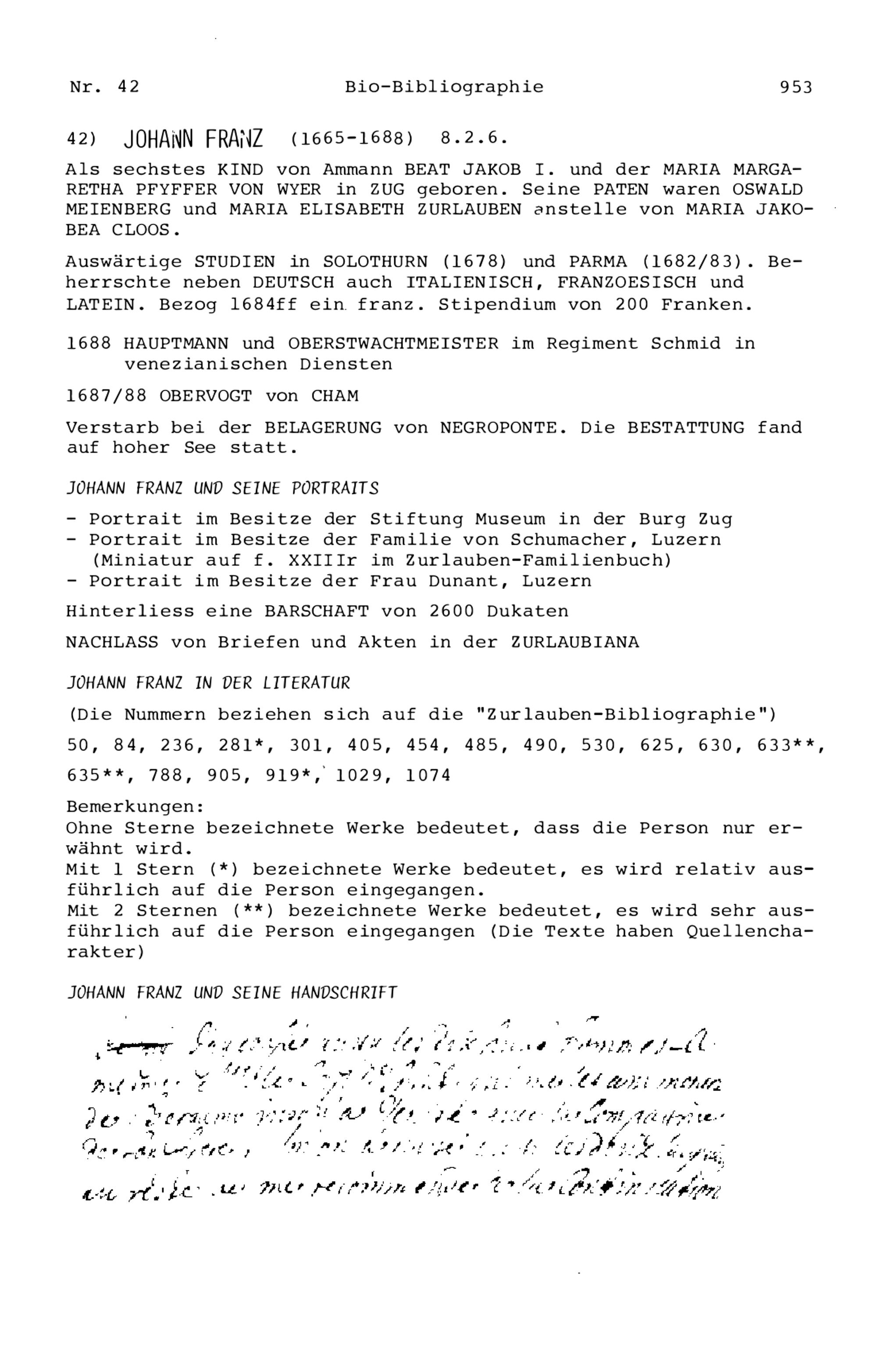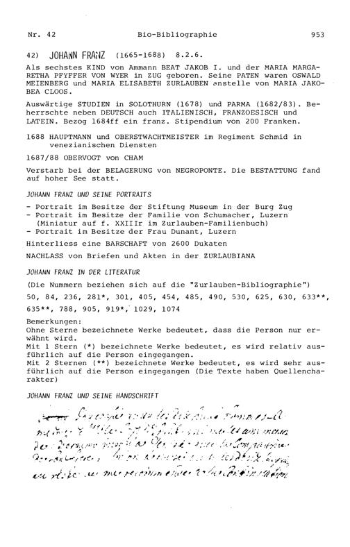 20. Bibliograohie der Arbeiten von Beat Fidel Zurlauben
