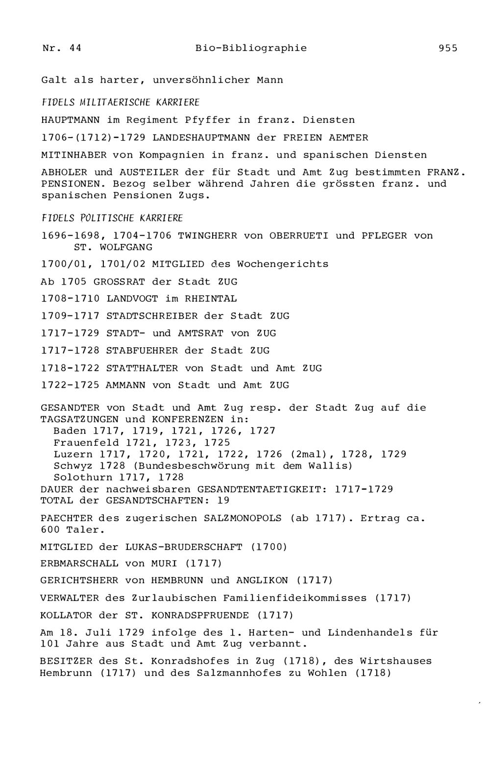 20. Bibliograohie der Arbeiten von Beat Fidel Zurlauben