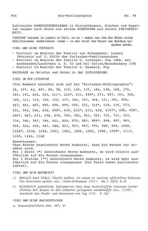 20. Bibliograohie der Arbeiten von Beat Fidel Zurlauben