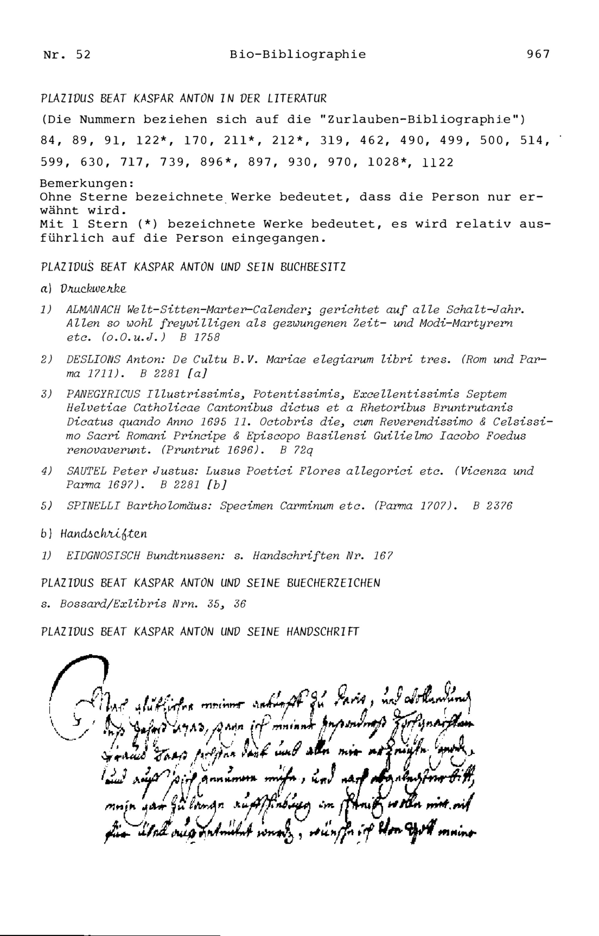 20. Bibliograohie der Arbeiten von Beat Fidel Zurlauben