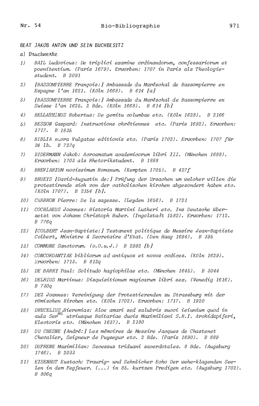 20. Bibliograohie der Arbeiten von Beat Fidel Zurlauben
