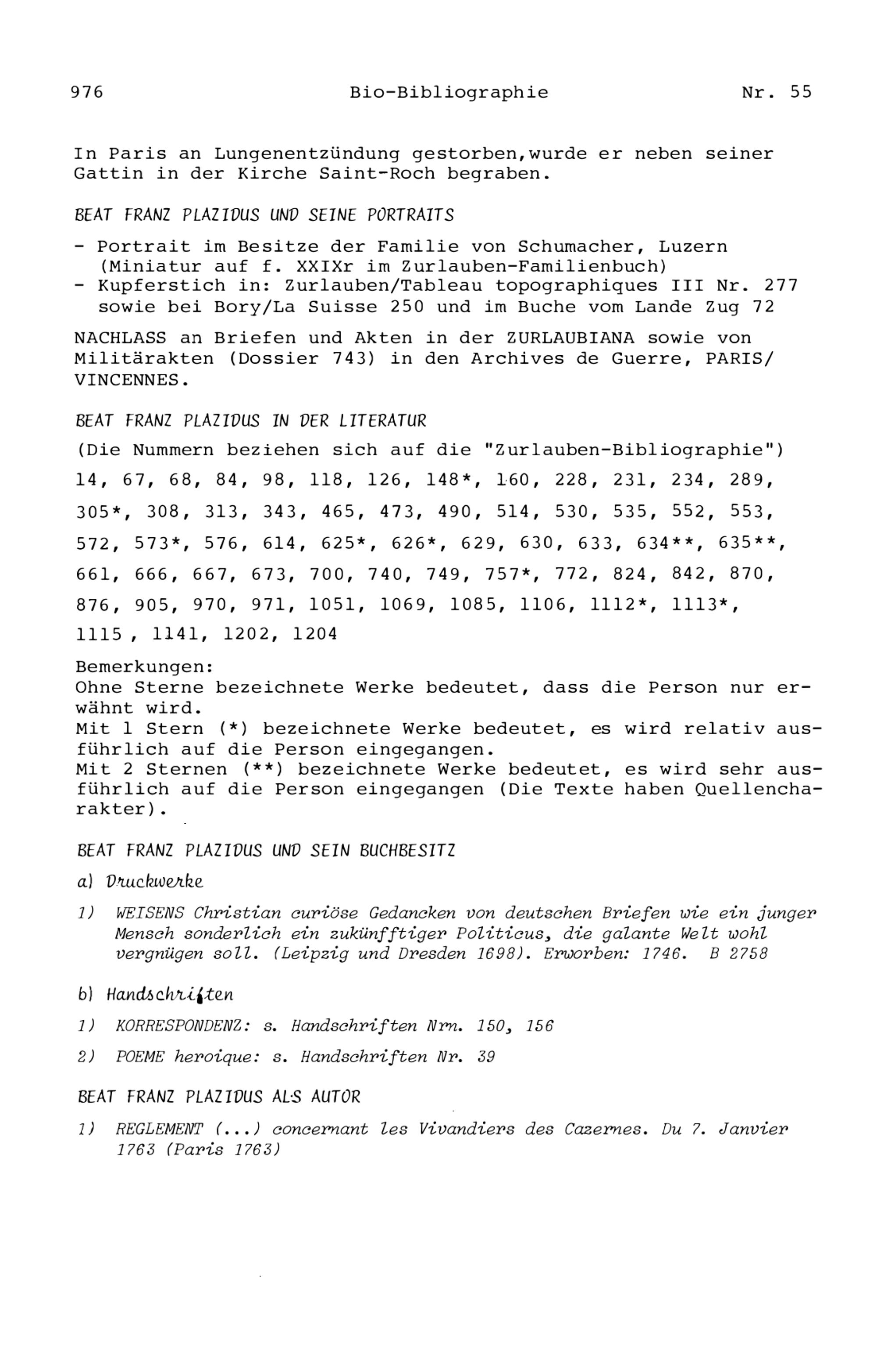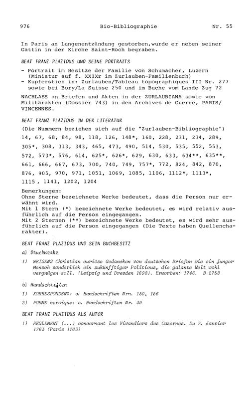 20. Bibliograohie der Arbeiten von Beat Fidel Zurlauben