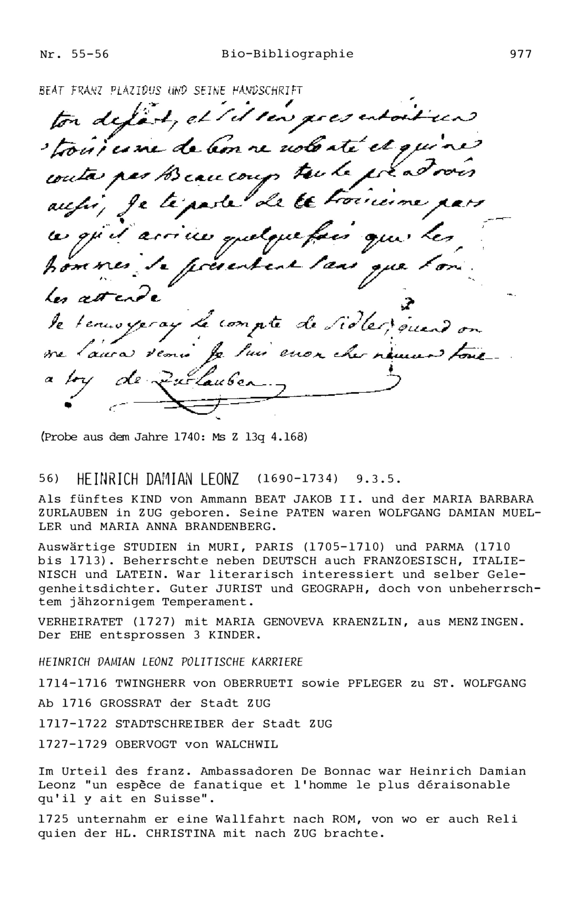 12. Bio-Bibliographie der Mitglieder der Familie Zurlauben