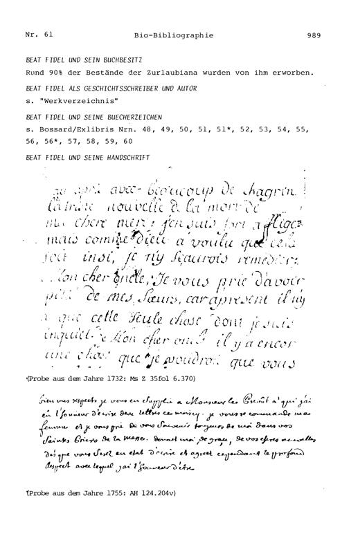 20. Bibliograohie der Arbeiten von Beat Fidel Zurlauben
