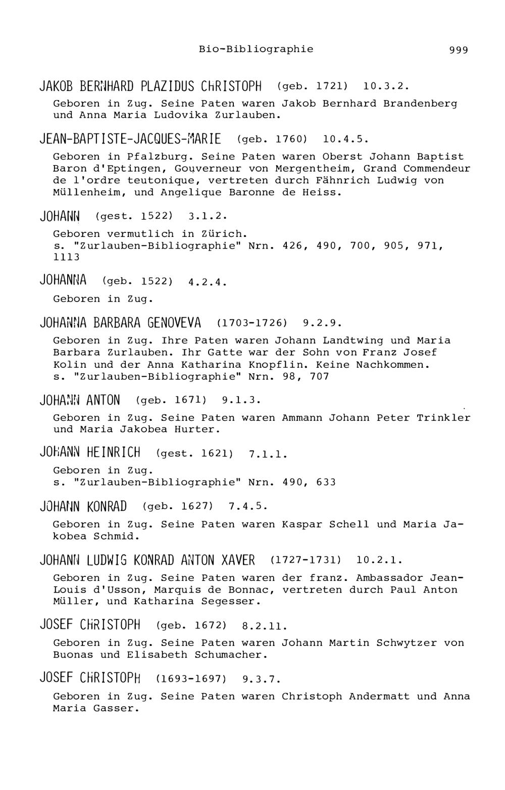 12. Bio-Bibliographie der Mitglieder der Familie Zurlauben