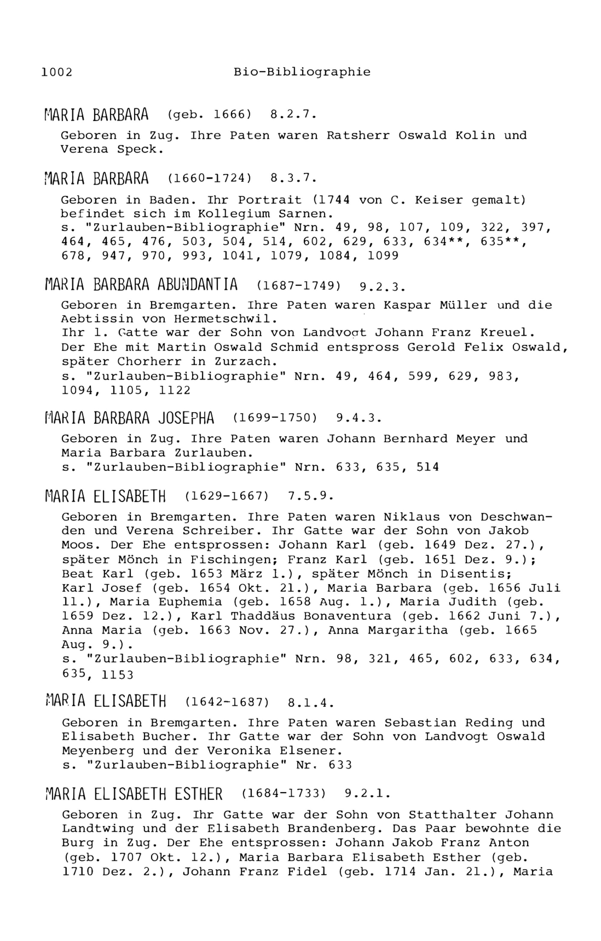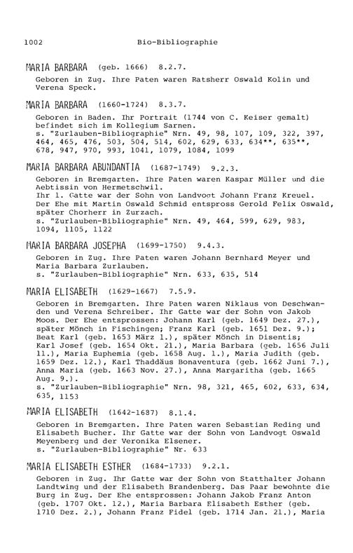 12. Bio-Bibliographie der Mitglieder der Familie Zurlauben