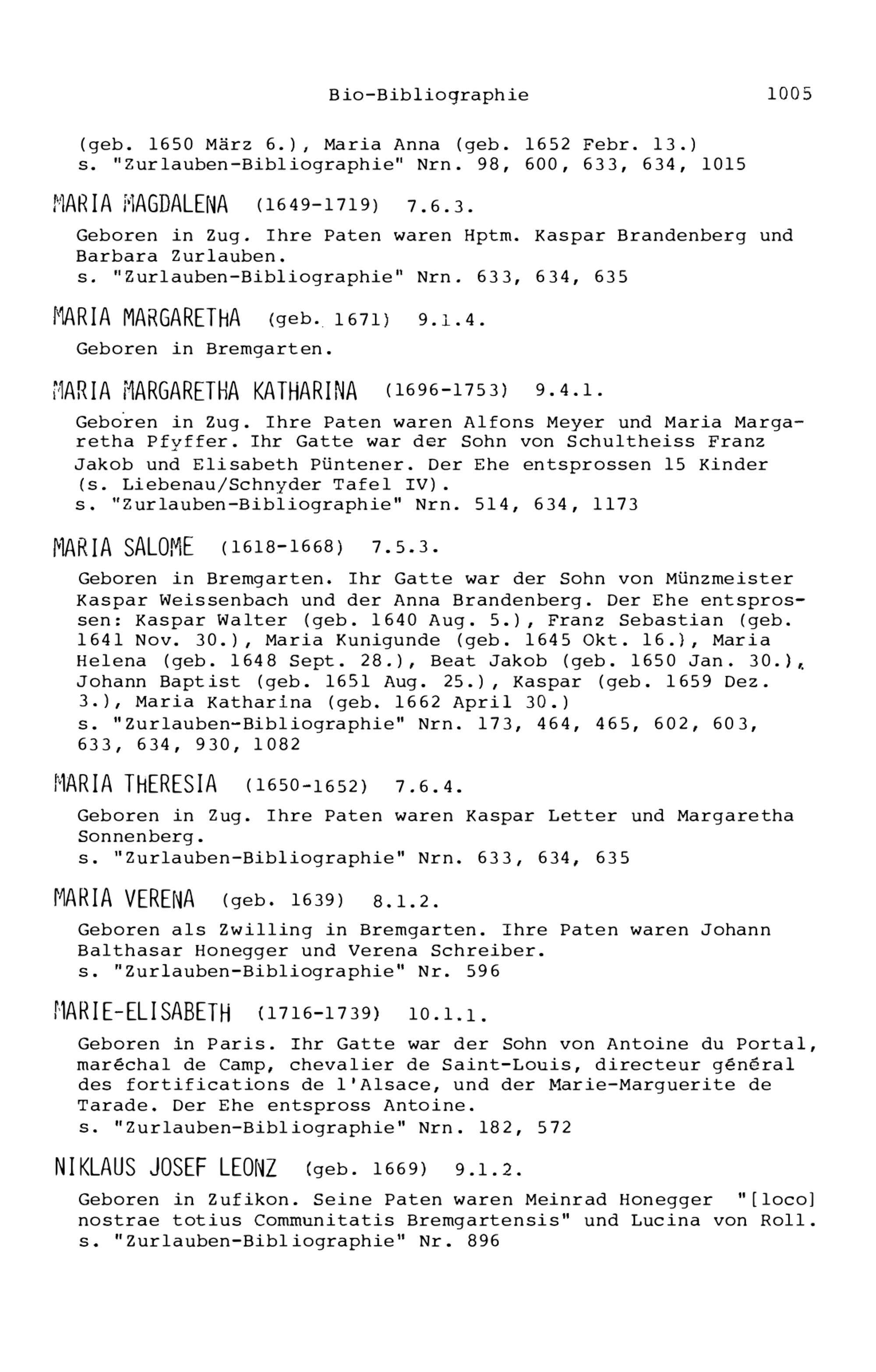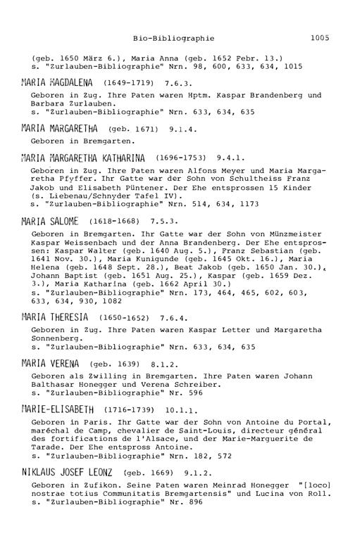 12. Bio-Bibliographie der Mitglieder der Familie Zurlauben