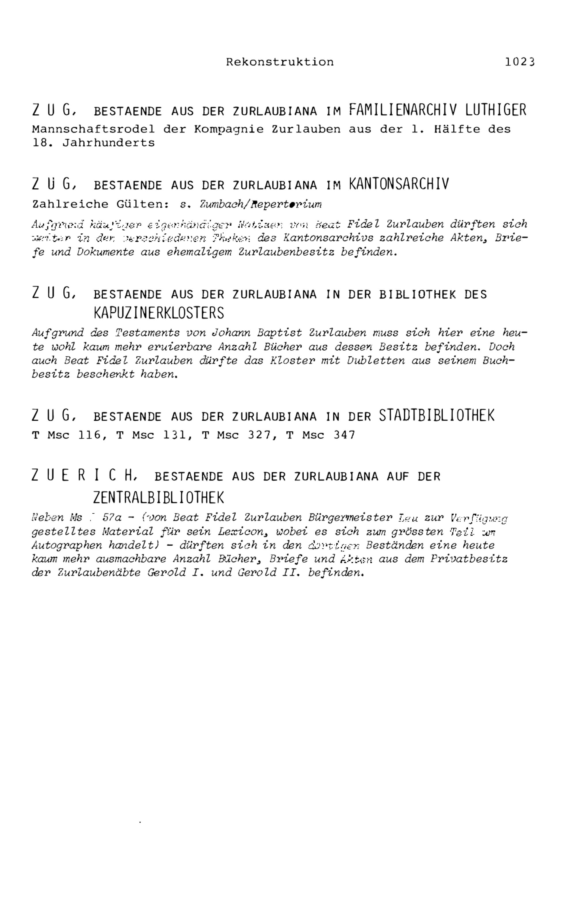 20. Bibliograohie der Arbeiten von Beat Fidel Zurlauben