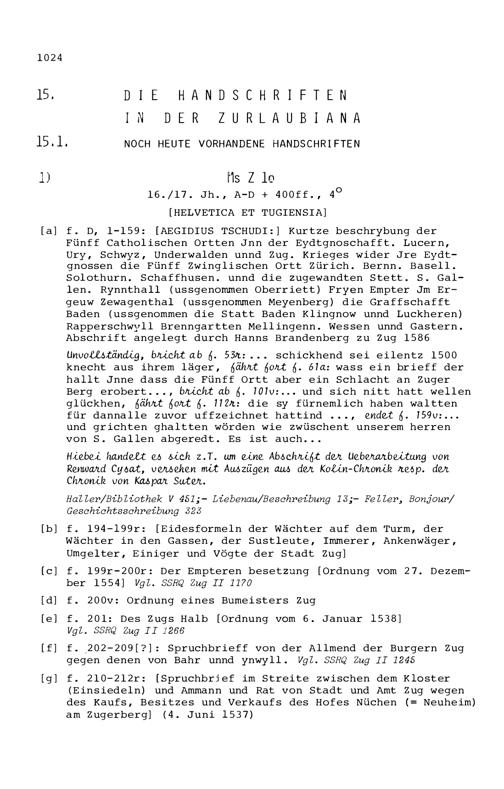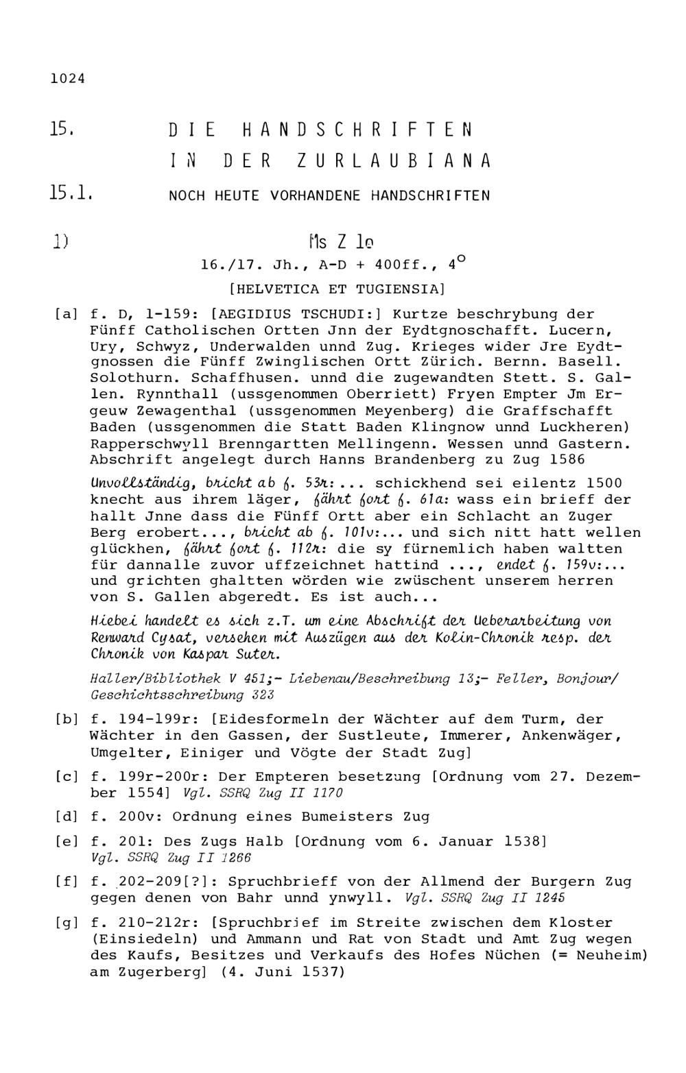 20. Bibliograohie der Arbeiten von Beat Fidel Zurlauben
