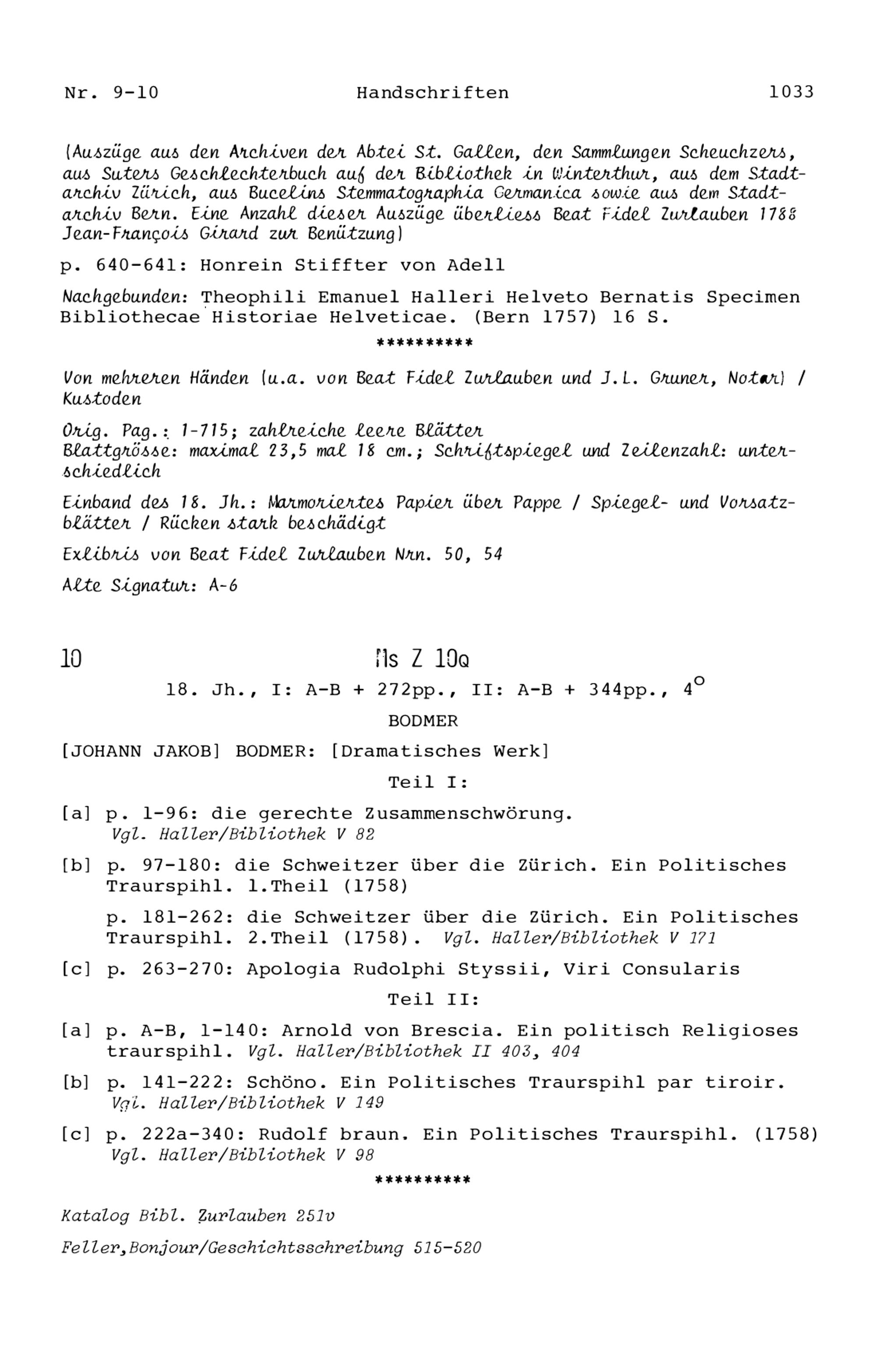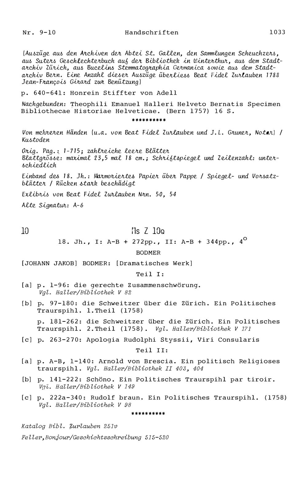 20. Bibliograohie der Arbeiten von Beat Fidel Zurlauben