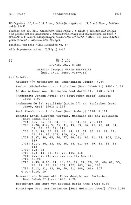 12. Bio-Bibliographie der Mitglieder der Familie Zurlauben