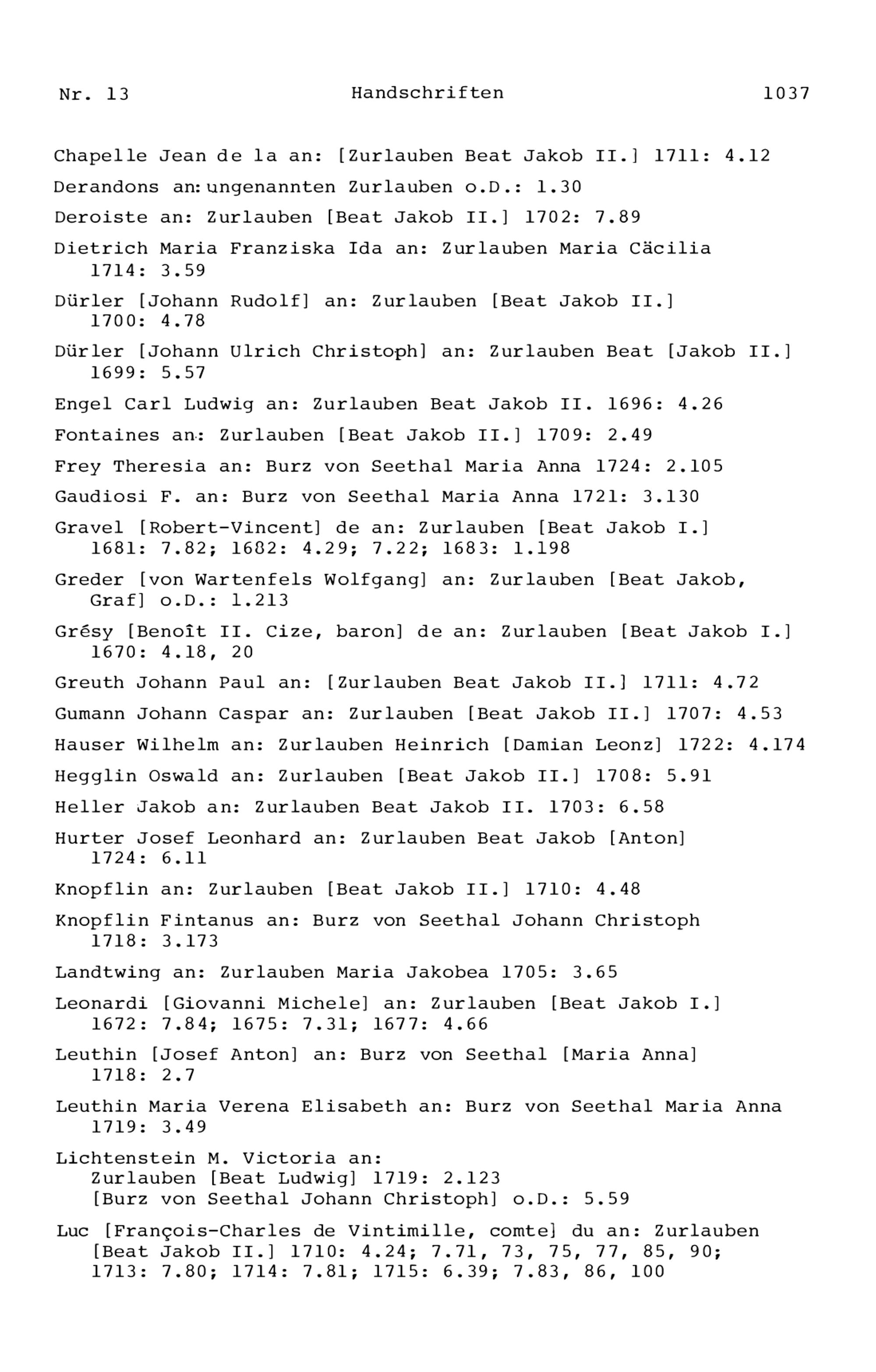 12. Bio-Bibliographie der Mitglieder der Familie Zurlauben