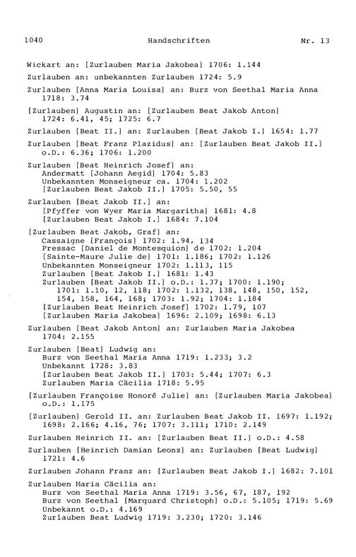 12. Bio-Bibliographie der Mitglieder der Familie Zurlauben