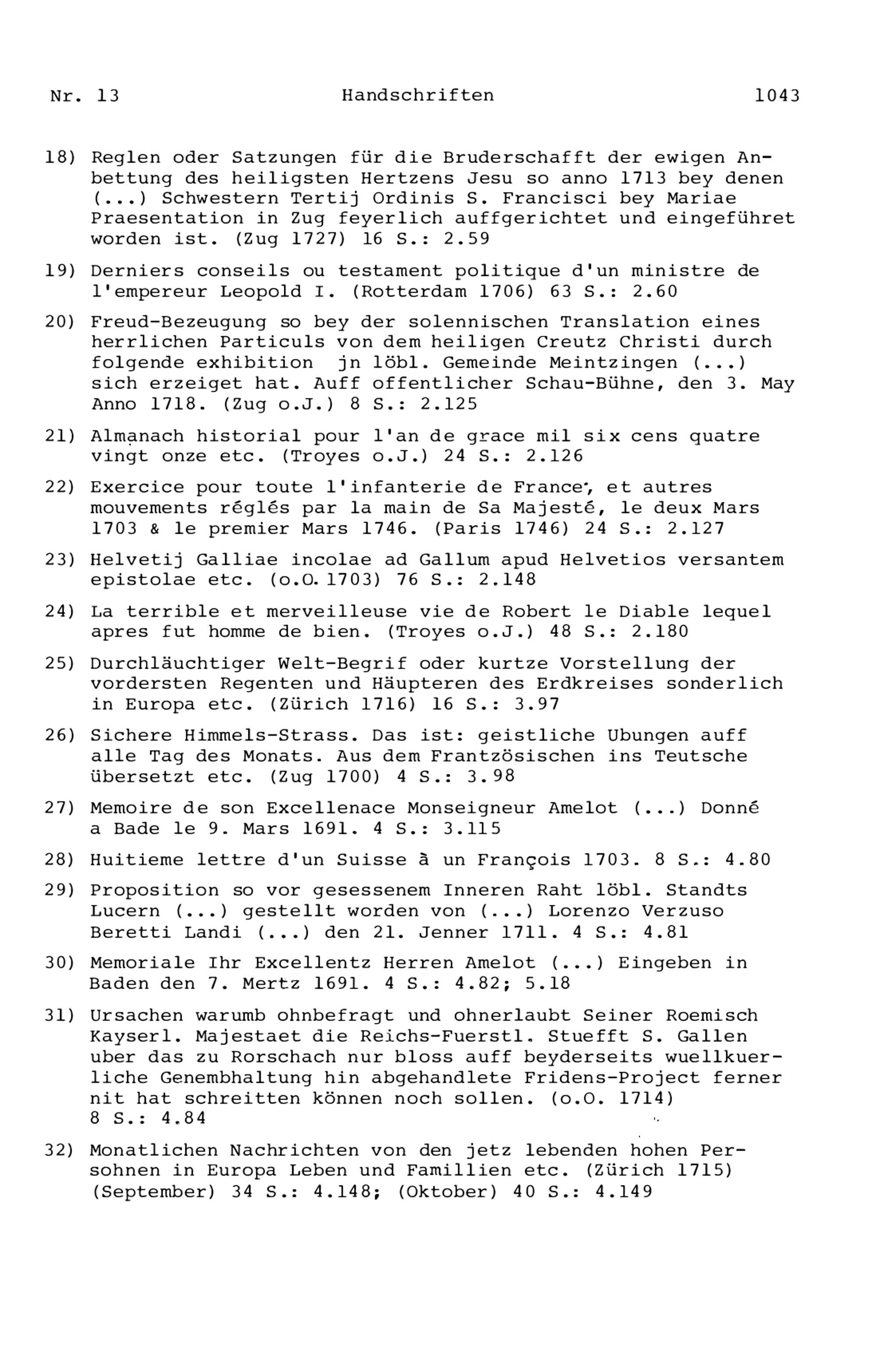 20. Bibliograohie der Arbeiten von Beat Fidel Zurlauben