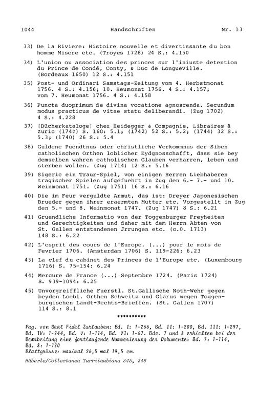 20. Bibliograohie der Arbeiten von Beat Fidel Zurlauben