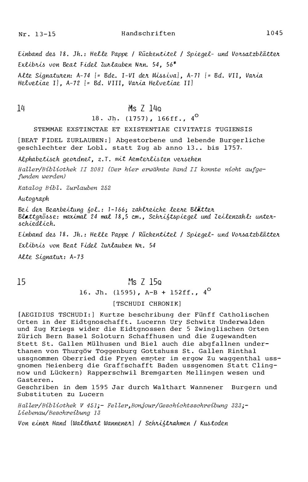 15. Die Handschriften in der Zurlaubiana