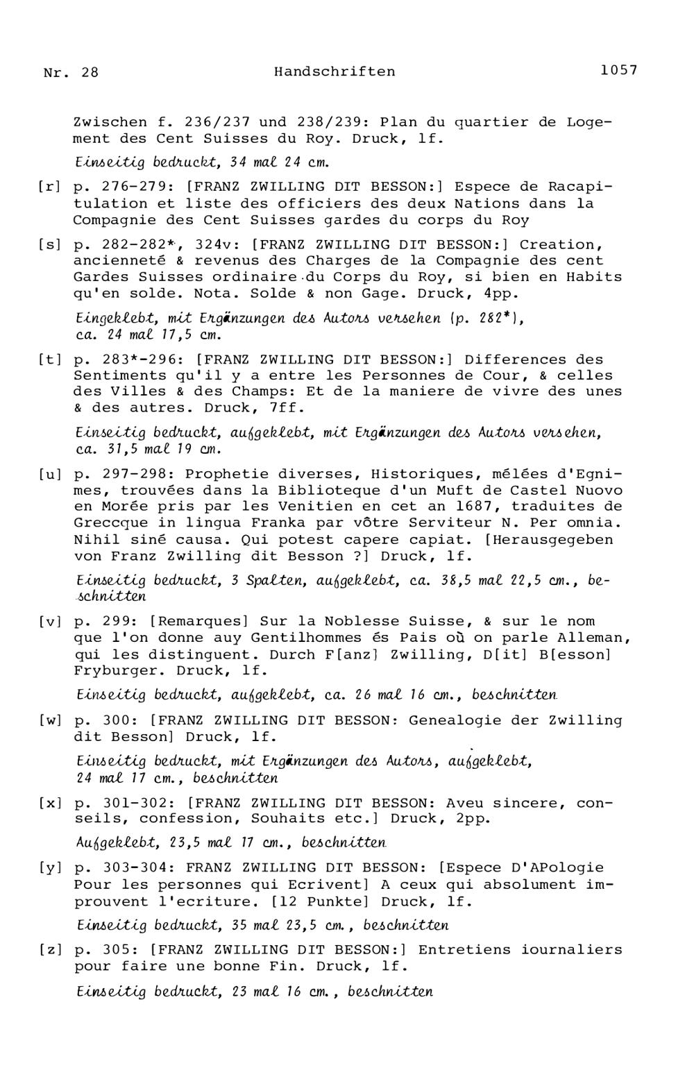 21. Register zu den Arbeiten von Beat Fidel Zurlauben