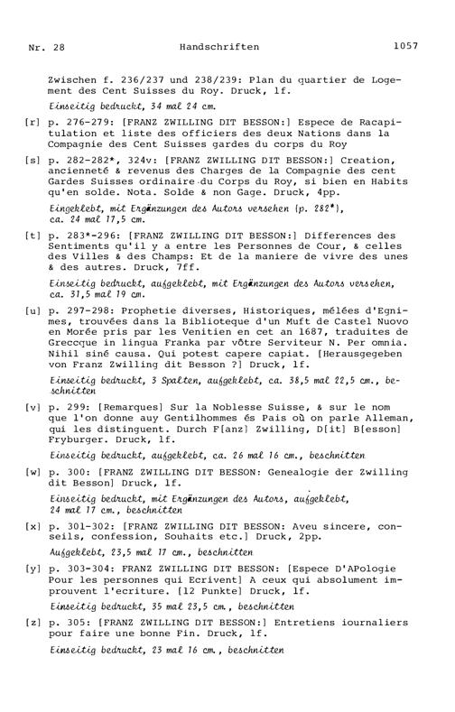 20. Bibliograohie der Arbeiten von Beat Fidel Zurlauben