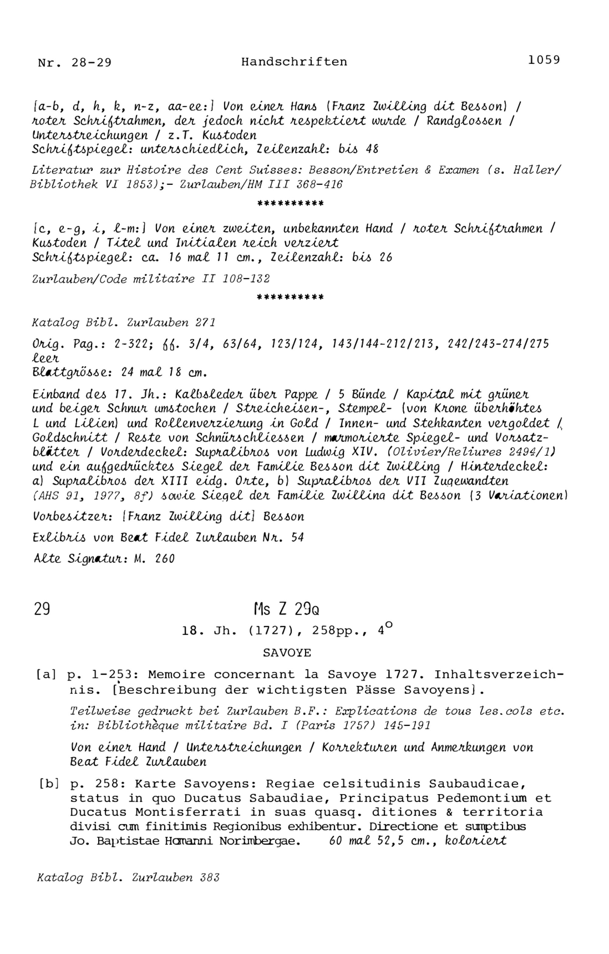 20. Bibliograohie der Arbeiten von Beat Fidel Zurlauben