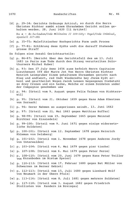 21. Register zu den Arbeiten von Beat Fidel Zurlauben