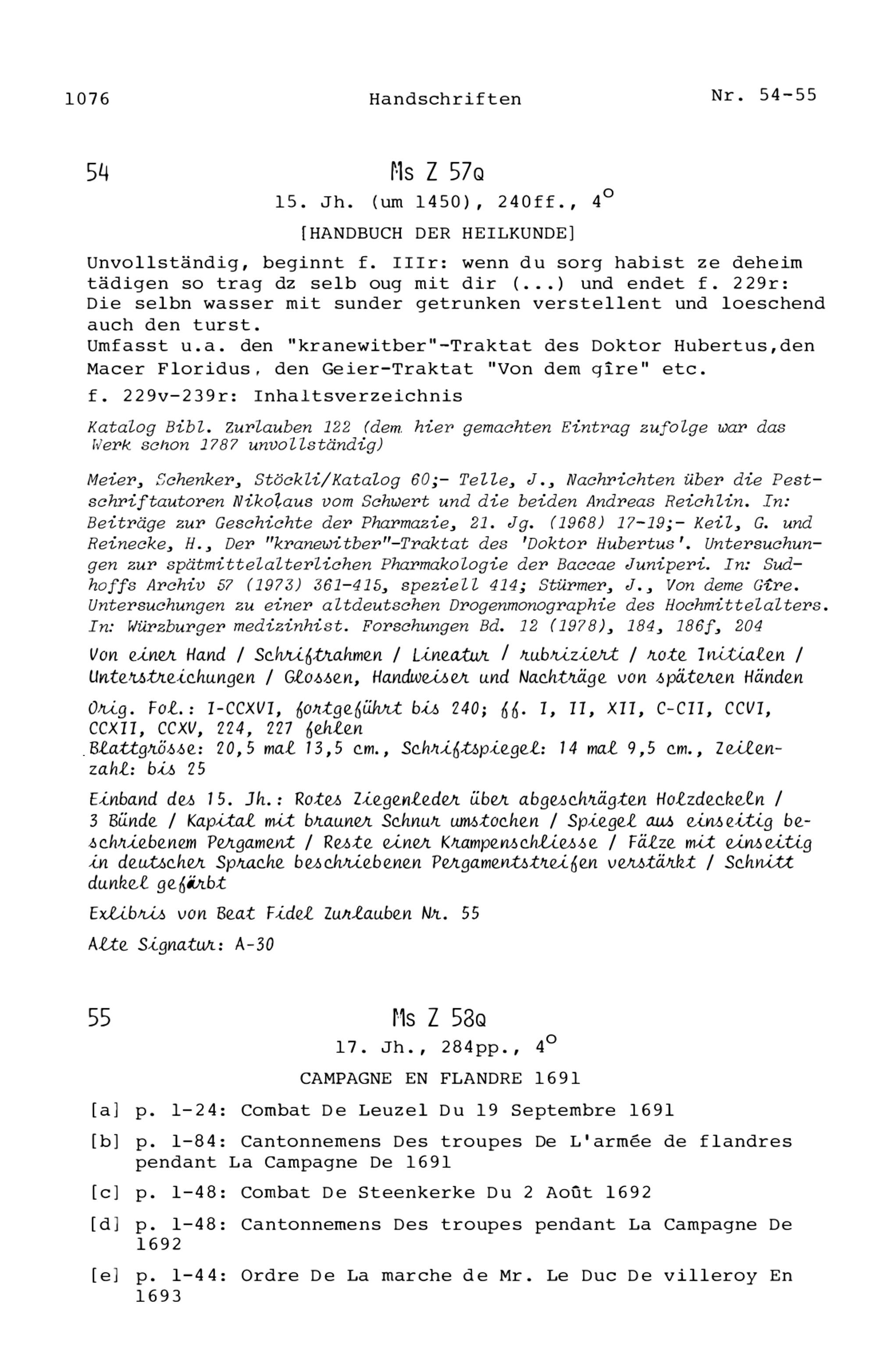 20. Bibliograohie der Arbeiten von Beat Fidel Zurlauben