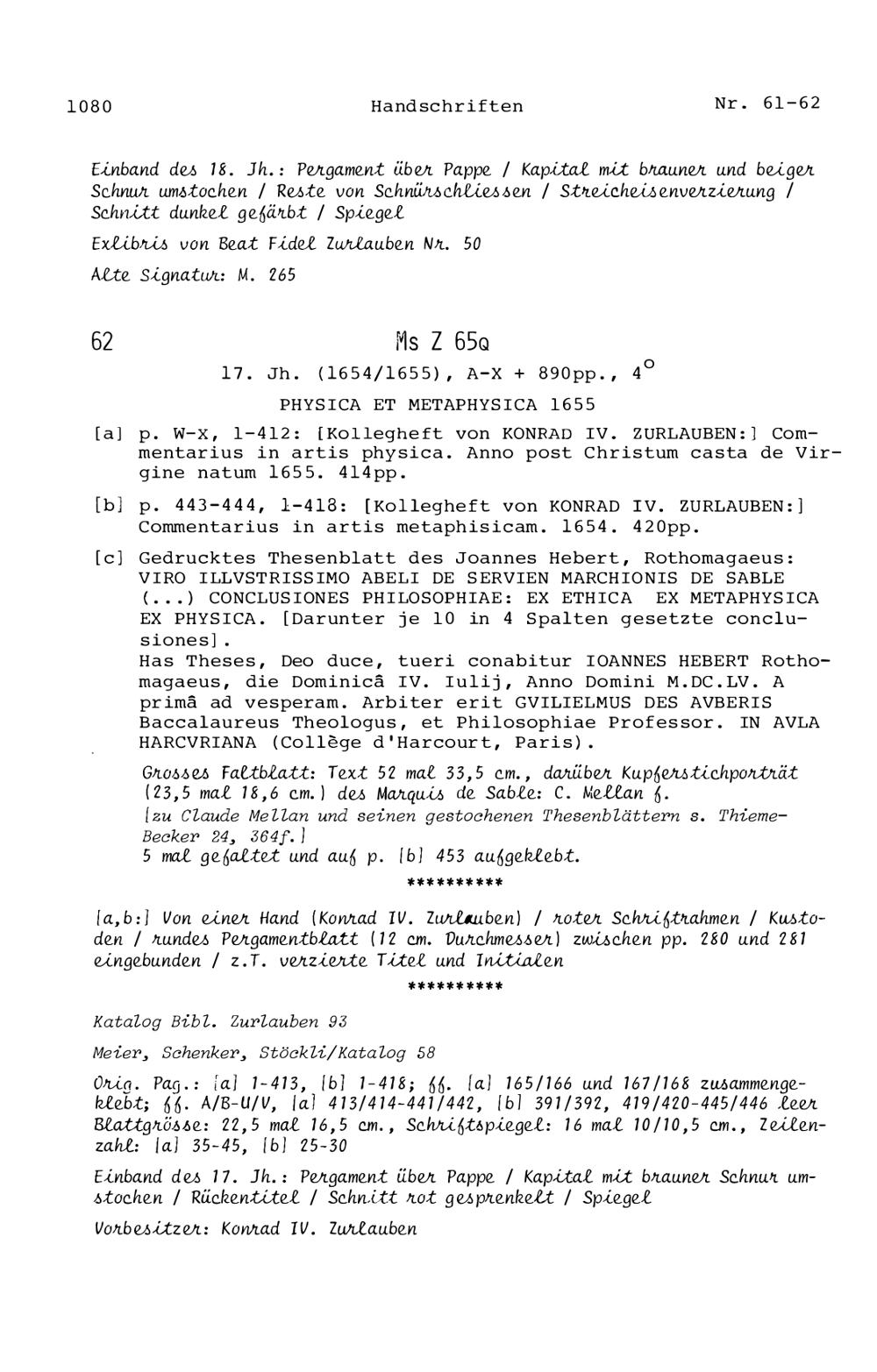 15. Die Handschriften in der Zurlaubiana