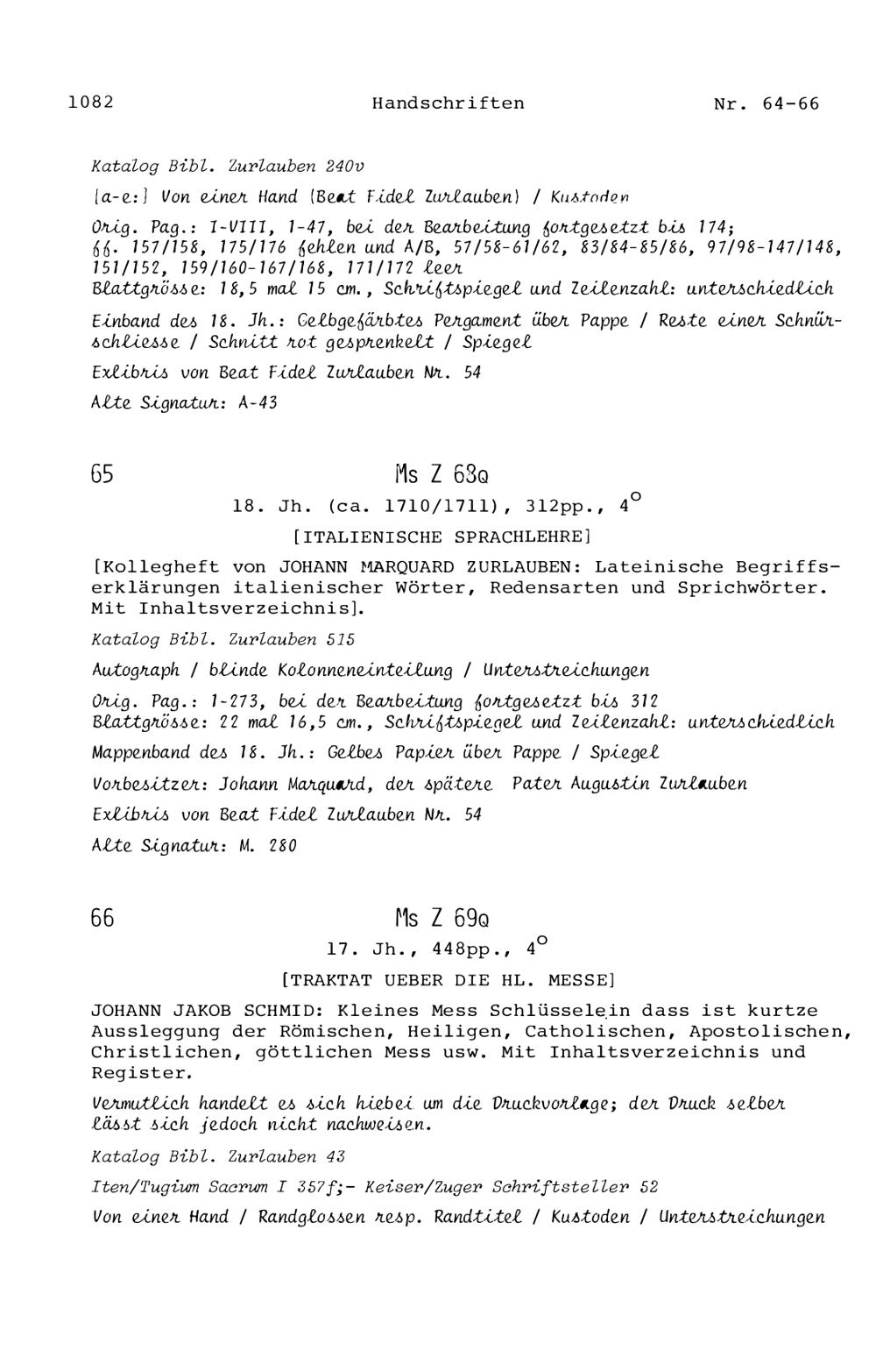 15. Die Handschriften in der Zurlaubiana