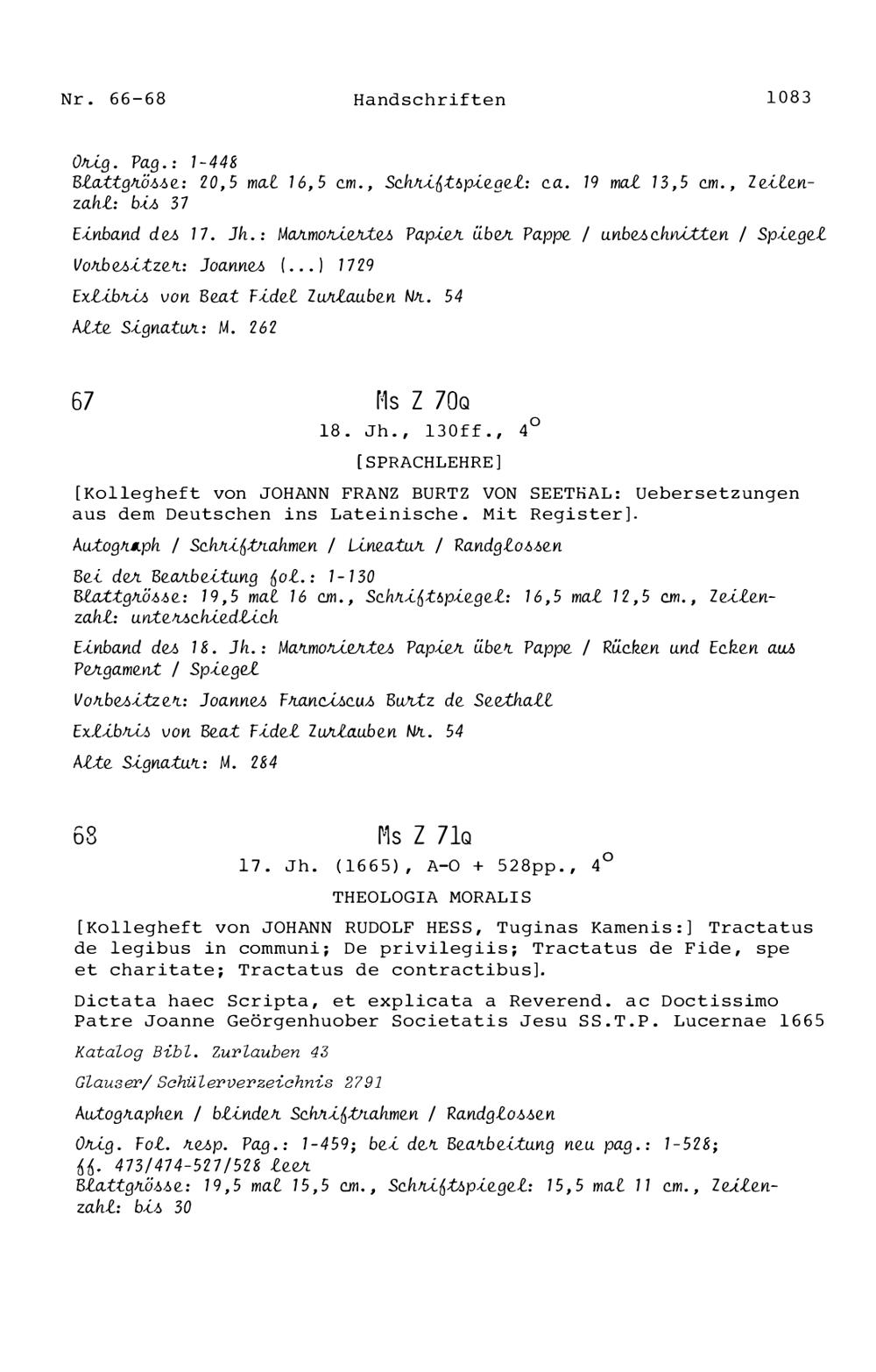 24. Die Bücher in der Zurlaubiana und ihre Vorbesitzer