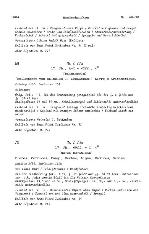 15. Die Handschriften in der Zurlaubiana