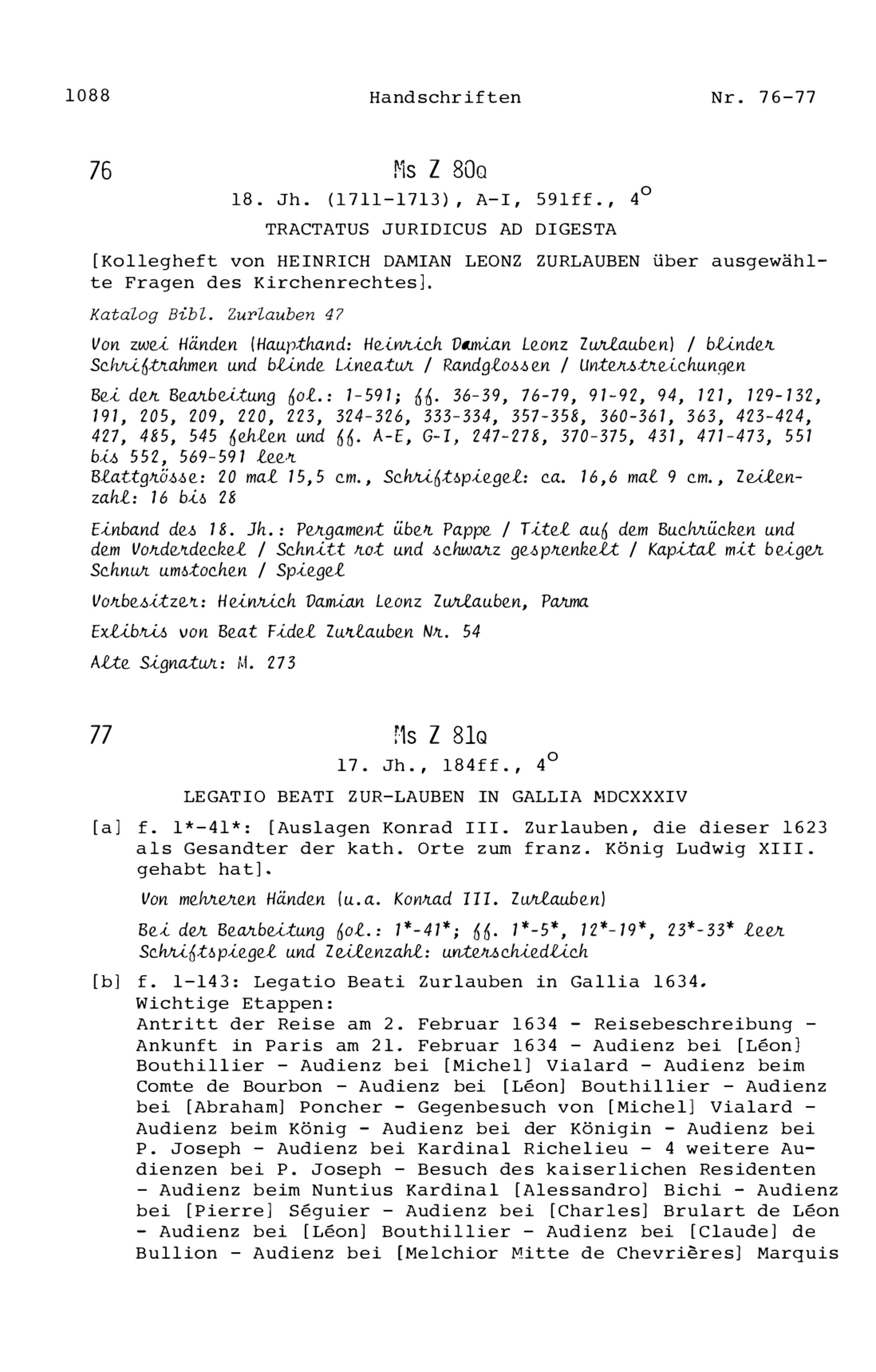 12. Bio-Bibliographie der Mitglieder der Familie Zurlauben