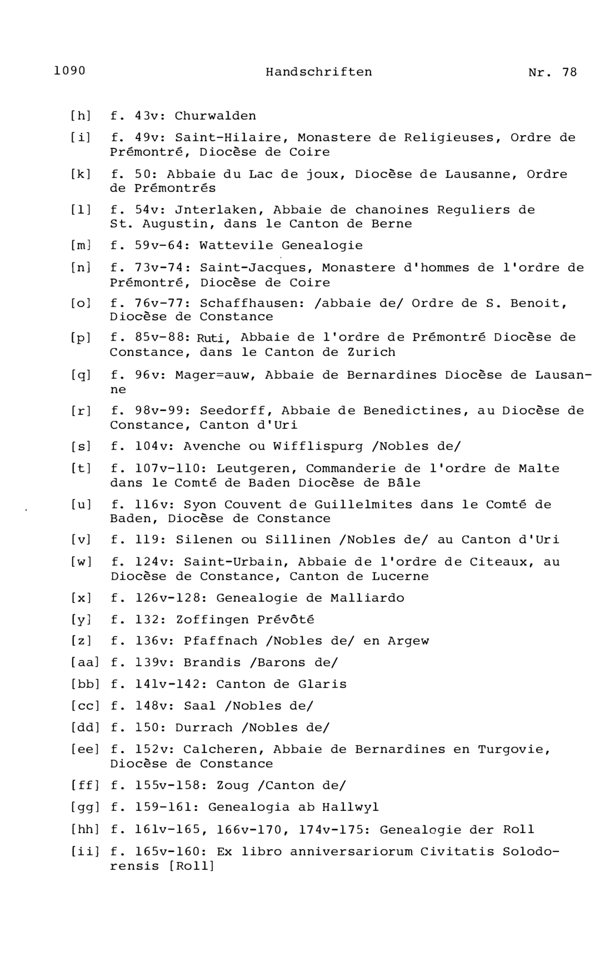 16. Register zu den Handschriften