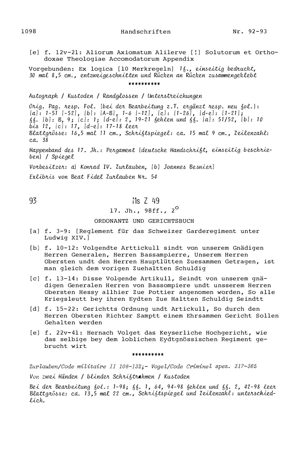 20. Bibliograohie der Arbeiten von Beat Fidel Zurlauben