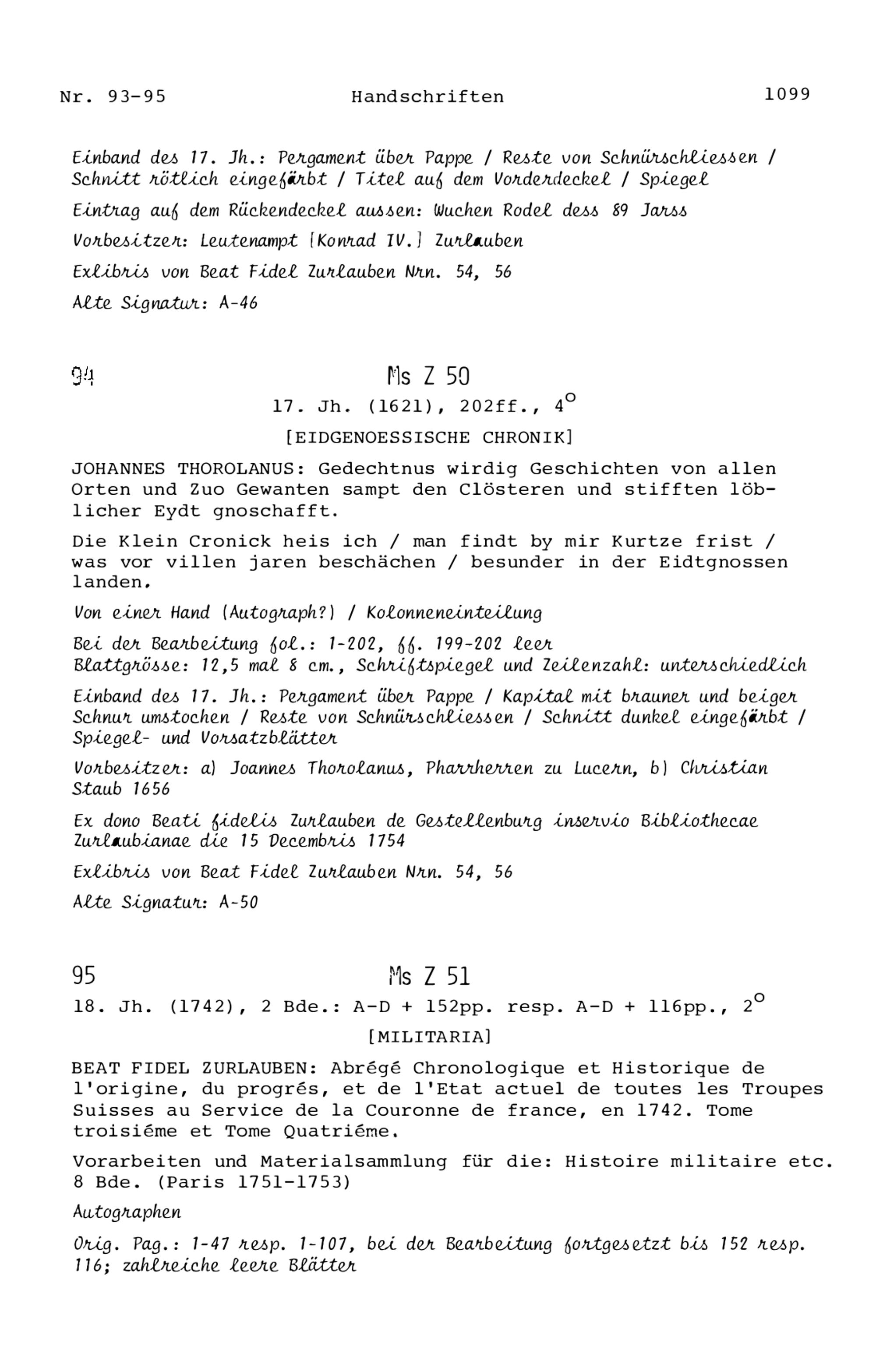 15. Die Handschriften in der Zurlaubiana