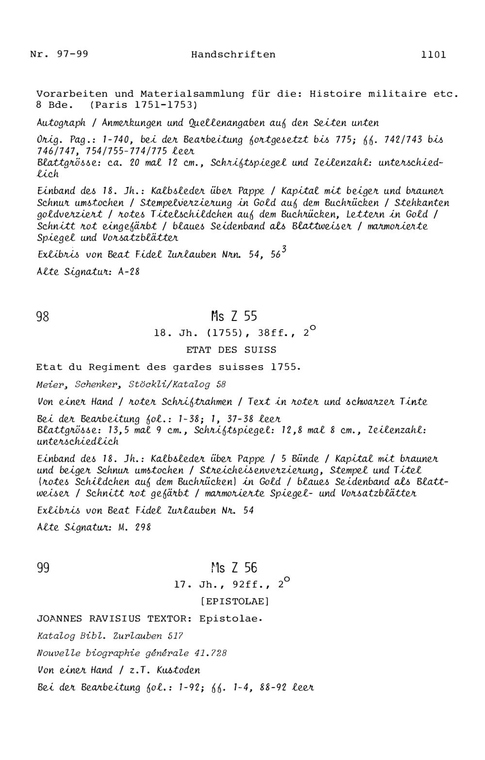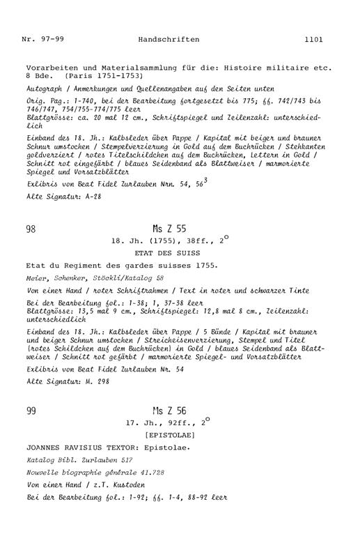 20. Bibliograohie der Arbeiten von Beat Fidel Zurlauben