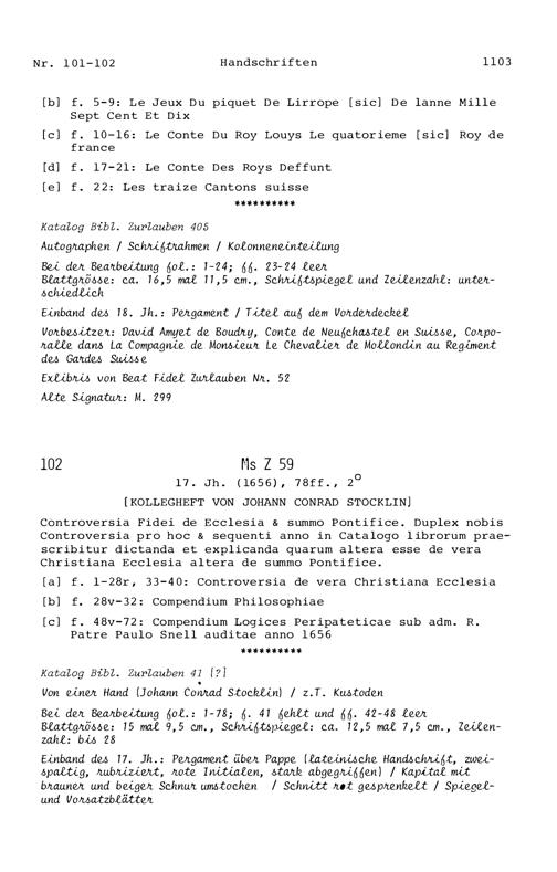 15. Die Handschriften in der Zurlaubiana