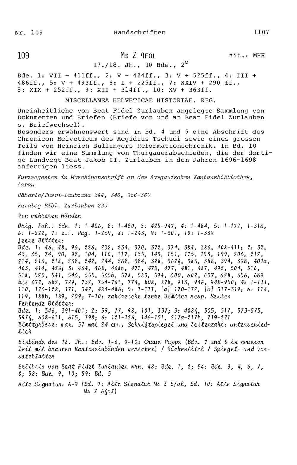 20. Bibliograohie der Arbeiten von Beat Fidel Zurlauben